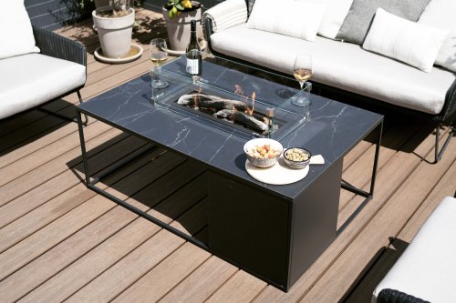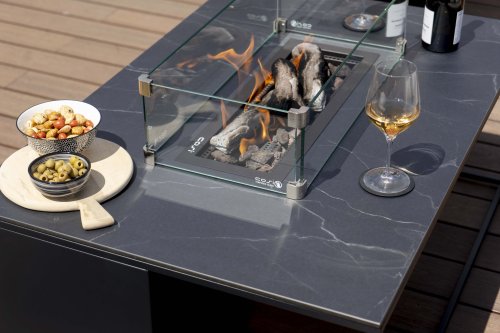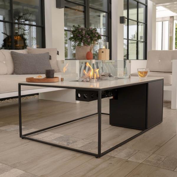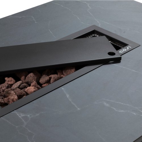 Een nieuwe toevoeging aan de Cosi collectie is de Cosidesign Line. Een keramiek tafelblad met een RVS frame maakt deze vuurtafel enorm sterk en geeft een lange levensduur. Het tafelblad heeft een mooie marmerlook en doordat dit een natuurproduct is, is elke blad uniek in zijn soort. Een gasfles met een max. hoogte van 40 cm past in het frame van deze vuurtafel.
