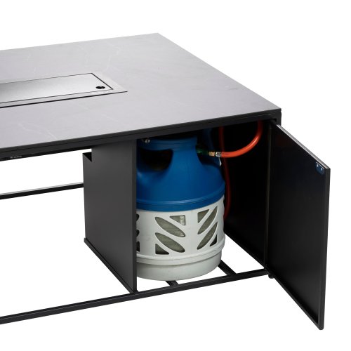 Een nieuwe toevoeging aan de Cosi collectie is de Cosidesign Line. Een keramiek tafelblad met een RVS frame maakt deze vuurtafel enorm sterk en geeft een lange levensduur. Het tafelblad heeft een mooie marmerlook en doordat dit een natuurproduct is, is elke blad uniek in zijn soort. Een gasfles met een max. hoogte van 40 cm past in het frame van deze vuurtafel.