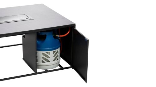 De Cosiloft 120 lounge table kan gemakkelijk worden gecombineerd met een grote range lounge sets. De Cosiloft 120 lounge table beschikt over een straight burner die genoeg ruimte geeft om al je vrienden en familie uit te nodigen voor een drankje. De Cosiloft is 80 cm breed en 120 cm lang. Deze vuurtafel heeft net als de Cosiloft 100 een mooi, opengewerkt aluminium frame dat gecombineerd kan worden met een van de drie tafelbladen: teak, zwart en grijs. Het frame is in twee kleuren beschikbaar: wit voor een moderne look of zwart voor een industriële stijl. Ondanks zijn mooie loungetafel hoogte past er in de Cosiloft 120 zelfs een 5 kg gasfles. Deze zit goed verwerkt in het pure design van de Cosiloft tafel. Bij iedere Cosiloft wordt een afdekplaat voor de brander meegeleverd. Heb je de haard niet aanstaan, kan je op deze manier toch gebruik maken van het totale tafeloppervlak.