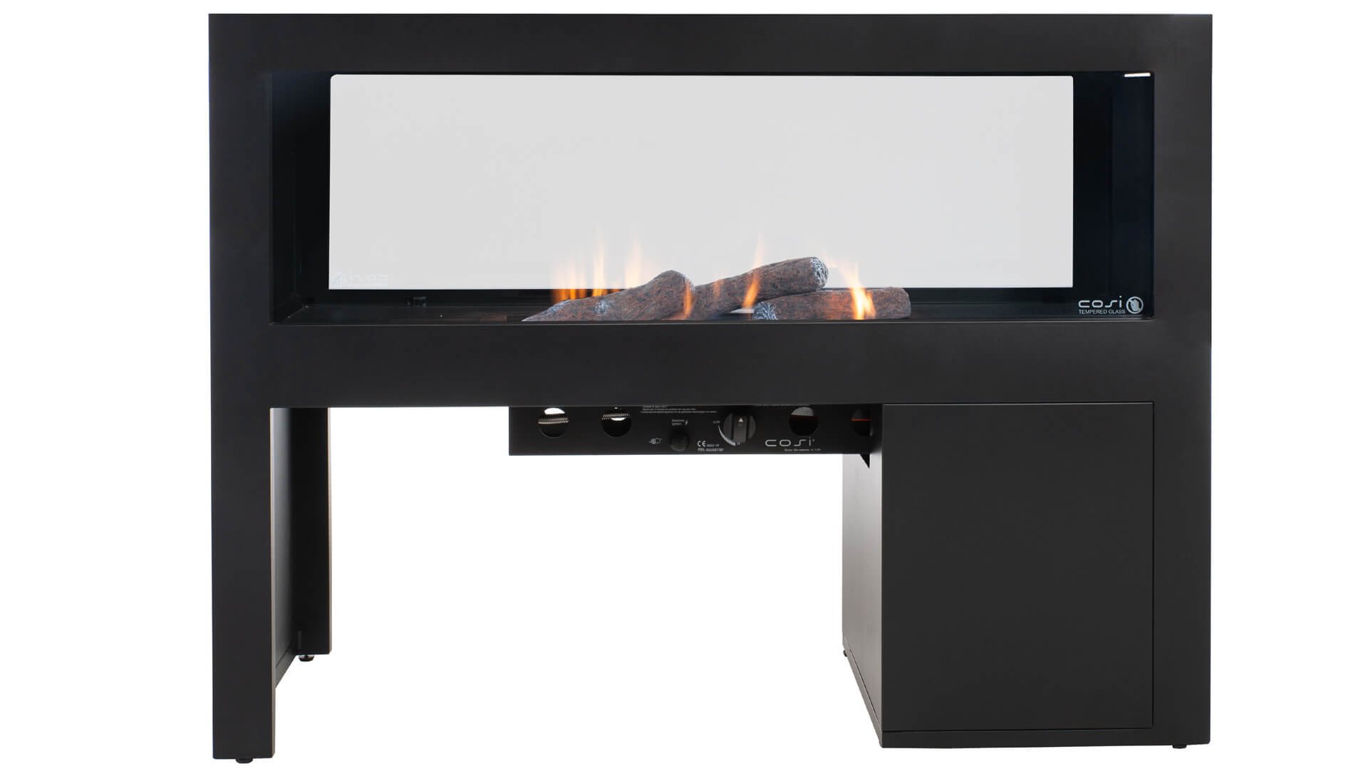 Een nieuwe verrassende toevoeging aan de Cosi collectie is de Cosivista serie. De Cosivista is een unieke vrijstaande gashaard, waar je doorheen kan kijken. Deze haard is namelijk voorzien van twee grote glazen wanden. Met deze brede haard van 120 cm of 160 cm kan jij de ruimte in jouw tuin of onder de overkapping in verschillende ruimtes indelen. Zet hem bijvoorbeeld tussen jouw loungeset en buitenkeuken, zo maak je de tuin vanuit verschillende hoeken sfeervol en gezellig. Wil je de Cosivista voor een wand plaatsen? Ook dit is mogelijk door de handige extra achterwand die meegeleverd wordt. Dit aluminium zwarte paneel hang je eenvoudig vanaf de bovenkant in de Cosivista. Met één kleine handeling heb je een totaal andere look voor deze prachtige gashaard. In de Cosivista 120 plaats je een gasfles met een max. hoogte van 40cm. Grote broer Cosivista 160 heeft zelfs ruimte voor gasflessen tot 60 cm hoog. Zo kan je nog langer genieten van de heerlijke warmte van deze kachel.