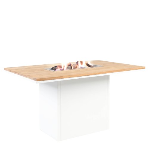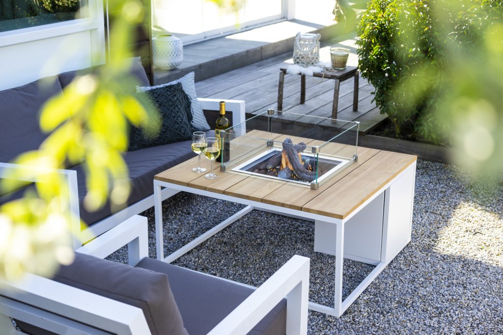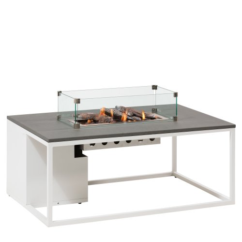 De Cosiloft 120 lounge table kan gemakkelijk worden gecombineerd met een grote range lounge sets. De Cosiloft 120 lounge table beschikt over een straight burner die genoeg ruimte geeft om al je vrienden en familie uit te nodigen voor een drankje. De Cosiloft is 80 cm breed en 120 cm lang. Deze vuurtafel heeft net als de Cosiloft 100 een mooi, opengewerkt aluminium frame dat gecombineerd kan worden met een van de drie tafelbladen: teak, zwart en grijs. Het frame is in twee kleuren beschikbaar: wit voor een moderne look of zwart voor een industriële stijl. Ondanks zijn mooie loungetafel hoogte past er in de Cosiloft 120 zelfs een 5 kg gasfles. Deze zit goed verwerkt in het pure design van de Cosiloft tafel. Bij iedere Cosiloft wordt een afdekplaat voor de brander meegeleverd. Heb je de haard niet aanstaan, kan je op deze manier toch gebruik maken van het totale tafeloppervlak.