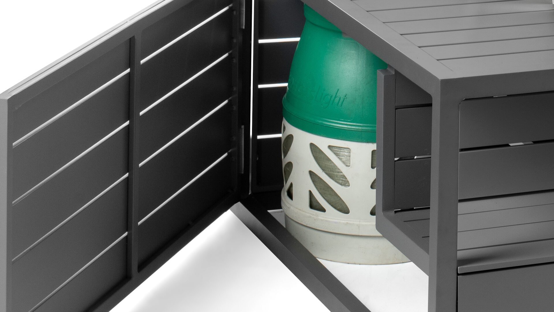 De Cocoon Table Aluminium van Happy Cocooning heeft een strakke en moderne look. Deze past perfect in een strakke tuin met een mooie lounge set. Een van de voordelen van de Aluminium tafel is dat de gasfles ook in de tafel opgeborgen kan worden.
