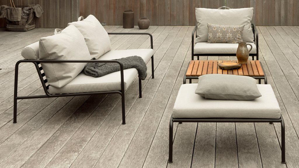 De HOUE AVON-collectie is ontworpen vanuit de wens om iets te creëren met een zeer lichte uitstraling en een laag strak profiel, met behoud van een hoog comfortniveau. Het onderhoudsvrije frame en de constructie van de grote zachte rugkussens is precies dat: de eenvoud van de structuur, waar lage lijnen ervoor zorgen dat het ontwerp er altijd trots uitziet, zowel met als zonder kussens - zomer of winter. De handgrepen van de kussens zijn een statement naar de functie van het product, waardoor ze gemaakt worden om gemakkelijk te pakken en op te bergen indien nodig.