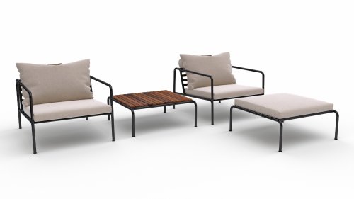 De HOUE AVON-collectie is ontworpen vanuit de wens om iets te creëren met een zeer lichte uitstraling en een laag strak profiel, met behoud van een hoog comfortniveau. Het onderhoudsvrije frame en de constructie van de grote zachte rugkussens is precies dat: de eenvoud van de structuur, waar lage lijnen ervoor zorgen dat het ontwerp er altijd trots uitziet, zowel met als zonder kussens - zomer of winter. De handgrepen van de kussens zijn een statement naar de functie van het product, waardoor ze gemaakt worden om gemakkelijk te pakken en op te bergen indien nodig.