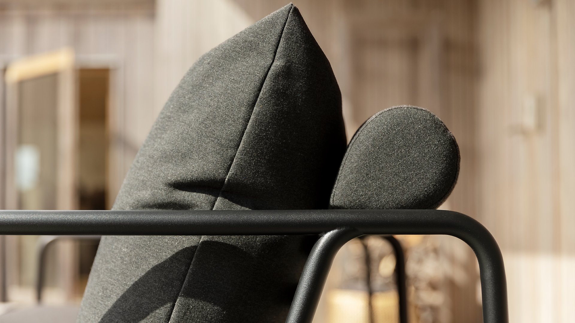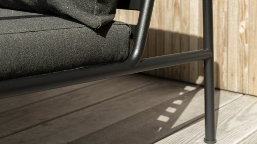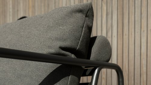 Het onderhoudsvrije gepoedercoat frame en de constructie van de grote zachte rugkussens is precies dat - de eenvoud van de structuur, waarbij lage lijnen ervoor zorgen dat het ontwerp er altijd trots uitziet, zowel met als zonder kussens - zomer of winter. De handvatten van de kussens, is een statement om de functie van het product te maken, waardoor ze worden gemaakt gemakkelijk vast te pakken en indien nodig op te bergen.