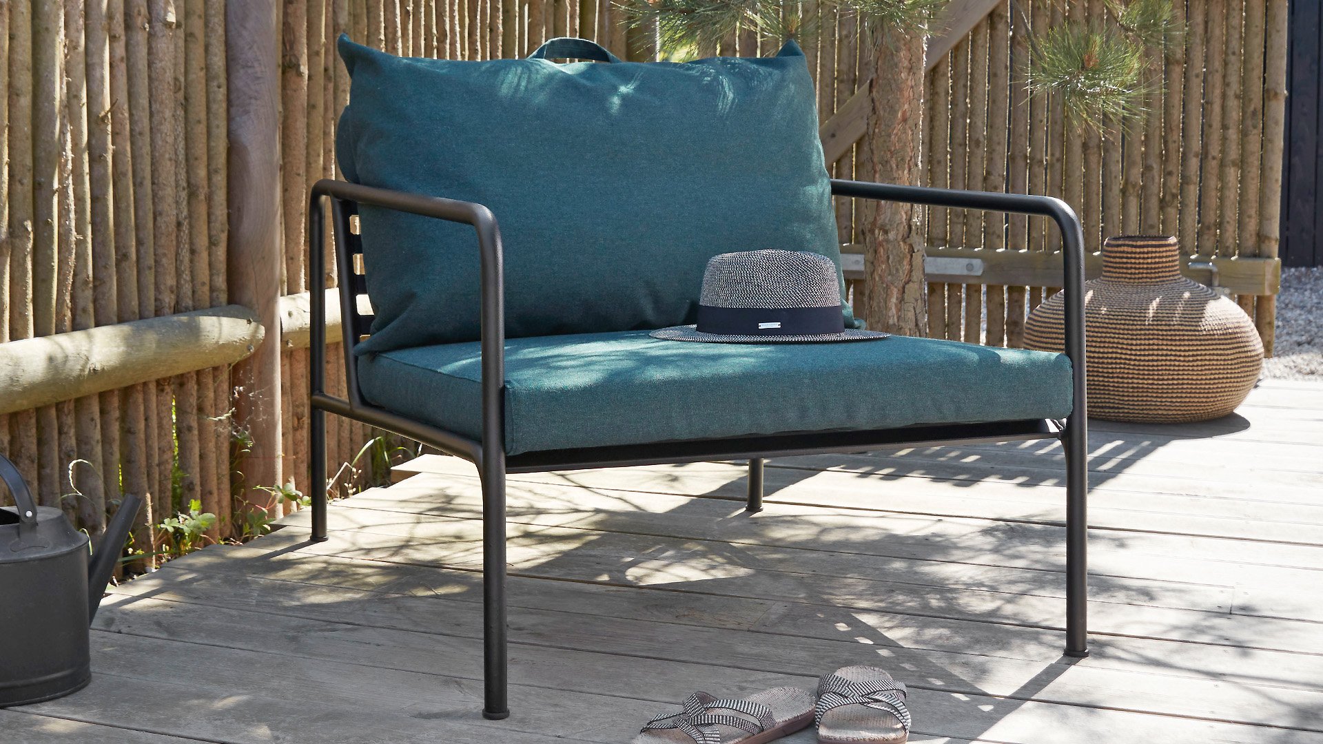 Water loopt dwars door het speciale schuim, terwijl een ander materiaal, Dacron, ervoor zorgt dat de kussens hun oorspronkelijke vorm behouden.De hoes is uitritsbaar en wasbaar. De kussens voor HOUE AVON zijn gemaakt met Sunbrella Heritage-stof die 50% gerecycled acryl bevat. Kleurrijke vezeluiteinden van het proces van hergebruik van het primaire materiaal kunnen in het weefsel verschijnen en de stofkleur van batch tot batch variëren. Hierdoor ontstaat een unieke stof met een natuurlijke uitstraling en vintage charme. De stof is Oeko-tex gecertificeerd, waterafstotend, vlekbestendig en onderhoudsvriendelijk.