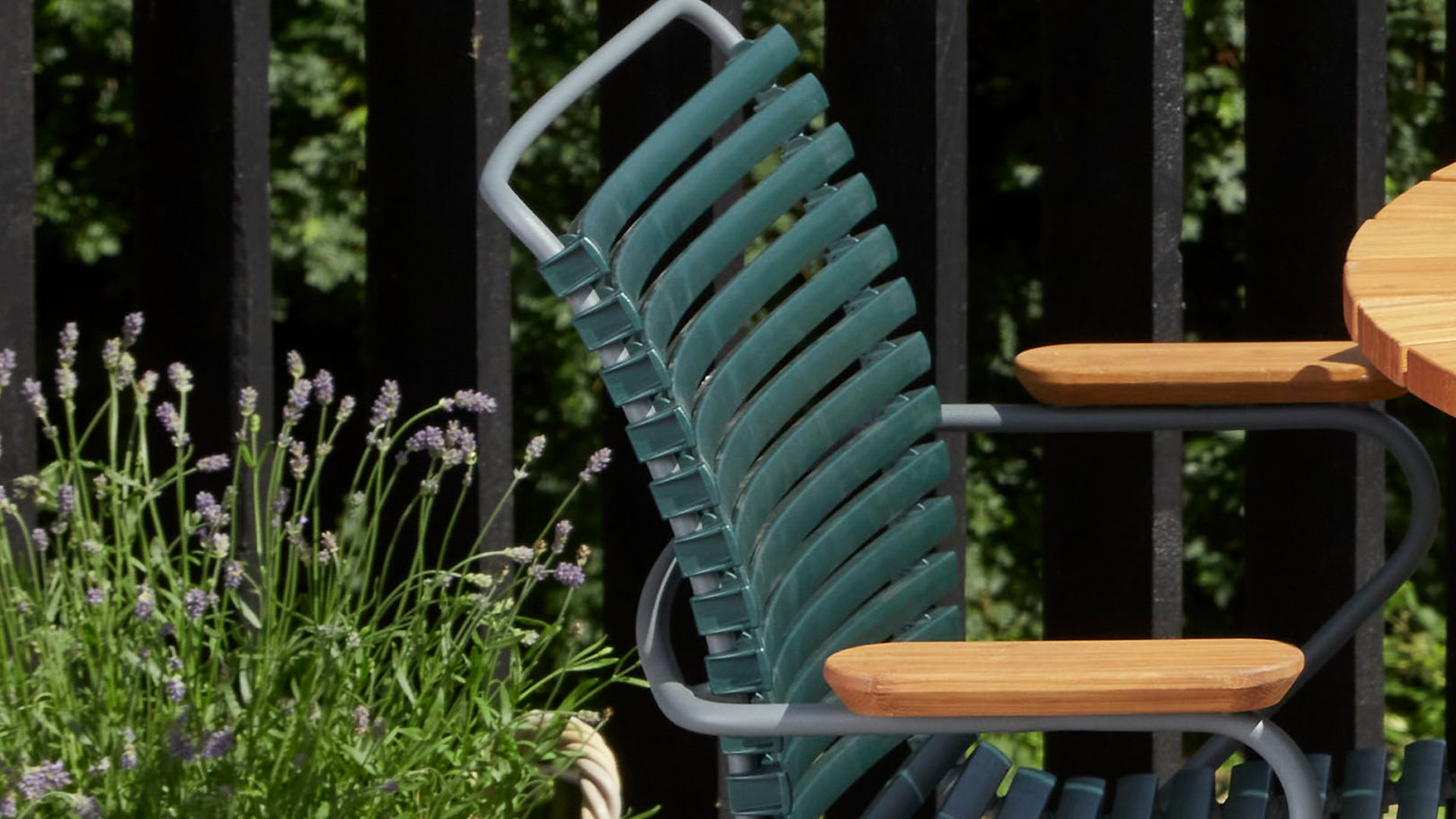 Deze tuinstoel is er zowel met als zonder armleuning, en volledig stapelbaar! HOUE CLICK Armchair Armchair is eenvoudig, eerlijk en ergonomisch doordacht. Deze tuinstoel heeft een rugleuning die zich perfect naar ieder lichaam vormt, de ergonomisch gevormde rug, maakt de stoel zeer comfortabel te gebruiken zonder kussen. Ook verkrijgbaar met hoge rugleuning of als verstelbare stoel.
