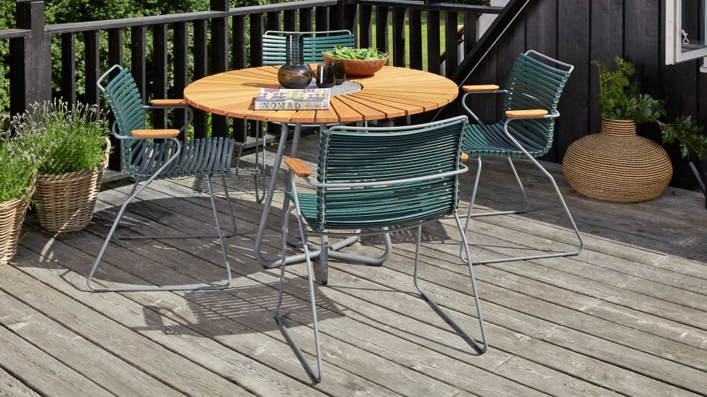 De Houe circle is een ronde tuintafel met een prachtig gemeleerd bamboe blad. De circle komt in 2 maten, namelijk 150cm en 110cm. Het leuke aan deze ronde tafel is dat het veel plek biedt. In het midden van de circle tafel zit een composiet steen. Dit is handig als u uw hete pannen e.d een plek moet geven. Het scandinavische design in combinatie met de duurzame bamboe zorgen ervoor dat deze tafel in iedere tuin tot zijn recht komt. Bamboe is een snel groeiende plant en daarom veel duurzamer dan teak. We adviseren de tafel 2-3 keer per jaar te oliën. Wanneer de tafel goed onderhouden wordt gaat hij erg lang mee en blijft hij zijn prachtige kleuren behouden.