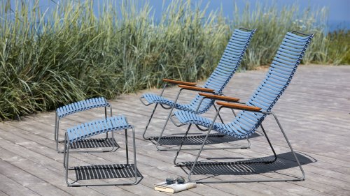 De Click Lounge collectie van Houe bestaat uit een aantal fraaie en vrolijke items. Denk aan de verstelbare standenstoel, de vrolijke loungestoel en de lounge schommelstoel. De armleggers van deze items zijn gemaakt van bamboe, een lichtgewicht en tevens sterk houtsoort. Het tuinmeubilair is speciaal gemaakt voor iedereen die ervan houdt om zijn of haar inrichting en meubilair van tijd tot tijd een nieuwe uitstraling te geven. Hoe dat precies kan? Het tuinmeubilair uit de HOUE Click collectie is gemaakt met lamellen in verschillende kleuren. Omdat deze lamellen gemakkelijk los en vast te maken zijn, kun je jouw HOUE Click meubilair naar eigen inzicht vormgeven. Combineer gerust want je beschikt over een uitgebreid kleurenpalet aan tinten waarmee je oneindig veel combinaties kunt maken.