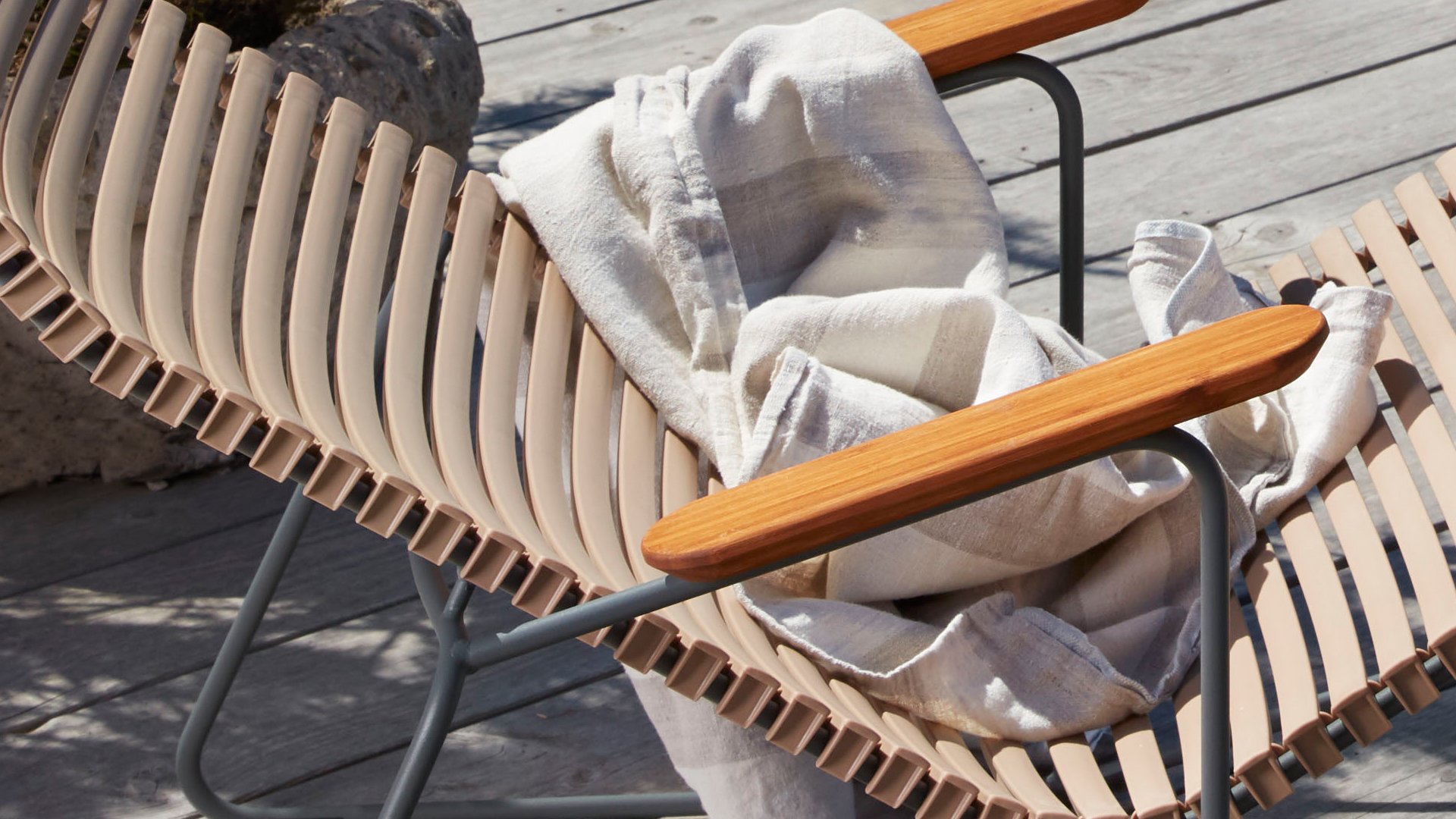 Heb je behoefte aan heerlijk loungen in de zon? ga dan voor de heerlijke Click loungestoel van HOUE! Deze tuinstoel heeft een rugleuning die zich perfect naar ieder lichaam vormt, de ergonomisch gevormde rug, maakt de stoel zeer comfortabel te gebruiken zonder kussen.