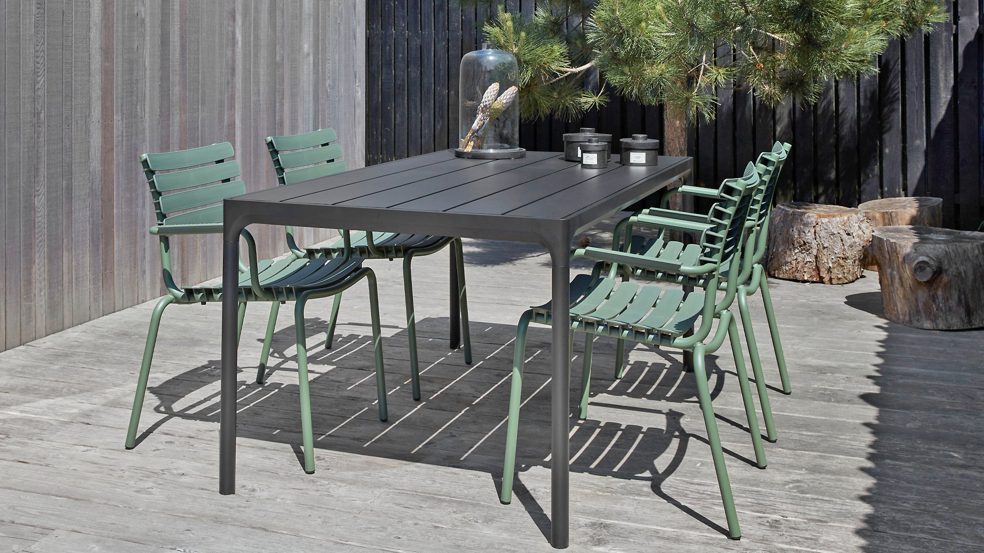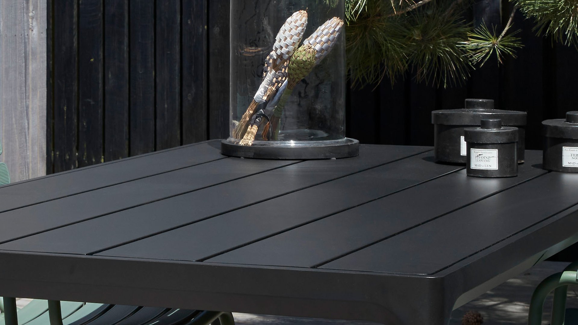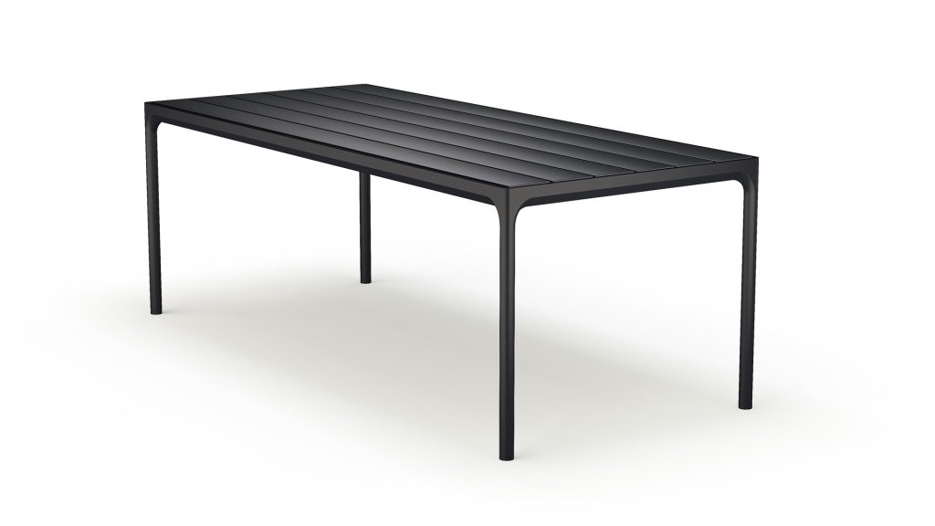 De Four tafel van Houe is een robuust model dat goed past binnen een industrieel interieur of een stoer interieur. De tafel is ontworpen om weer en wind te kunnen weerstaan. De Four tafel heeft een sterk aluminium frame verkrijgbaar in gepoedercoat zwart. Het aluminium tafelblad heeft een structuur die erg geschikt is voor het buitengebruik. De tafel komt in de afmetingen met een lengte maat van 90, 160, 210 en 270cm en hebben allemaal een breedte maat van 90cm en een hoogte van 74cm (bartafel 111cm hoog).