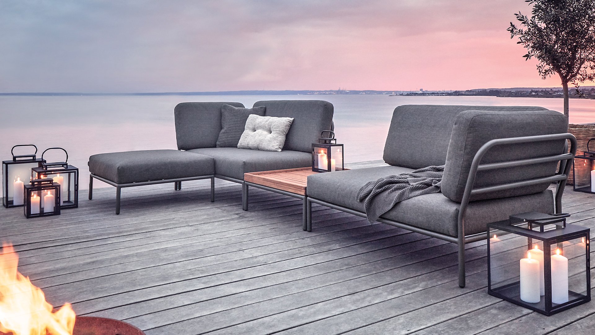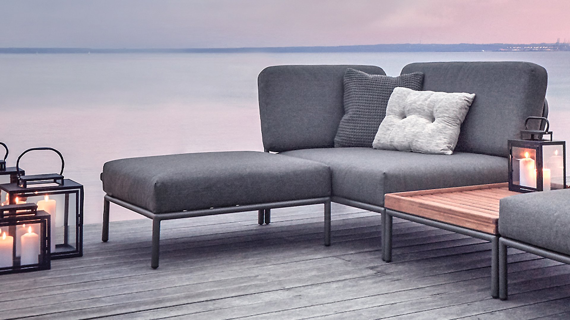 De Houe Level Lounge, ontworpen door Henrik Pedersen. Het draait allemaal om niveau, om oog in oog komen te staan met de natuur, om je te verhouden tot de horizon en lijnen en vormen naar een hoger niveau te tillen! Het lichtgewicht frame en de zachte kussens creëren zowel contrast als comfort - en lokt met een ontspannen loungesfeer. HOUE LEVEL is een loungeserie bestaande uit 2 bankmodules - een links en een rechts - een enkele stoel, een poef, een salontafel en een bijzettafel, waardoor het mogelijk is om de modules op veel verschillende manieren te combineren.