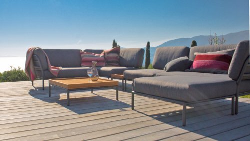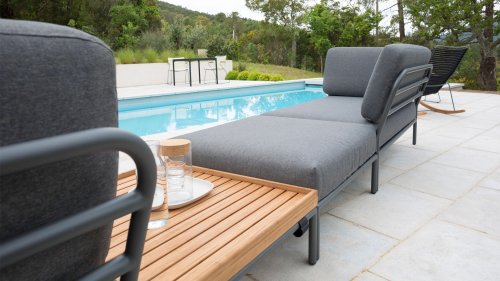 De verschillende elementen van deze collectie kunnen op verschillende manieren met elkaar worden gecombineerd, wat resulteert in een hoogwaardige loungehoek op uw terras. De bankmodule is gemaakt van gepoedercoat aluminium en heeft kussens van waterafstotend, donkergrijs materiaal. Deze ruime, zachte loungeset schreeuwt om zon, boeken en een drankje. En het allergrootste pluspunt? Ook met zijn tweeën kun je comfortabel liggen, omdat er kussens aan de armleuningen bevestigd zijn. Kies dus je lievelingskant, en het genieten kan beginnen.