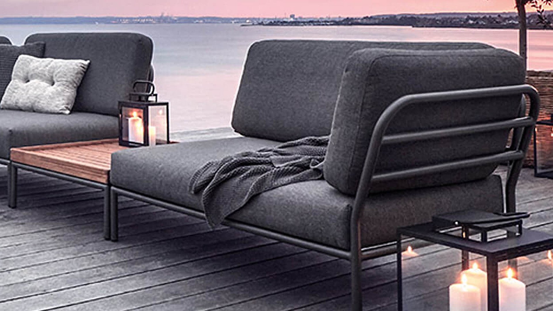 De Houe Level Lounge, ontworpen door Henrik Pedersen. Het draait allemaal om niveau, om oog in oog komen te staan met de natuur, om je te verhouden tot de horizon en lijnen en vormen naar een hoger niveau te tillen! Het lichtgewicht frame en de zachte kussens creëren zowel contrast als comfort - en lokt met een ontspannen loungesfeer. HOUE LEVEL is een loungeserie bestaande uit 2 bankmodules - een links en een rechts - een enkele stoel, een poef, een salontafel en een bijzettafel, waardoor het mogelijk is om de modules op veel verschillende manieren te combineren.