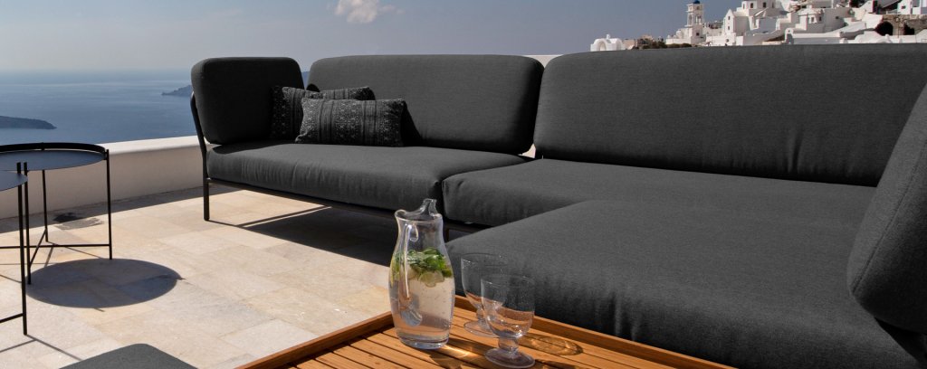 De verschillende elementen van deze collectie kunnen op verschillende manieren met elkaar worden gecombineerd, wat resulteert in een hoogwaardige loungehoek op uw terras. De bankmodule is gemaakt van gepoedercoat aluminium en heeft kussens van waterafstotend, donkergrijs materiaal. Deze ruime, zachte loungeset schreeuwt om zon, boeken en een drankje. En het allergrootste pluspunt? Ook met zijn tweeën kun je comfortabel liggen, omdat er kussens aan de armleuningen bevestigd zijn. Kies dus je lievelingskant, en het genieten kan beginnen.