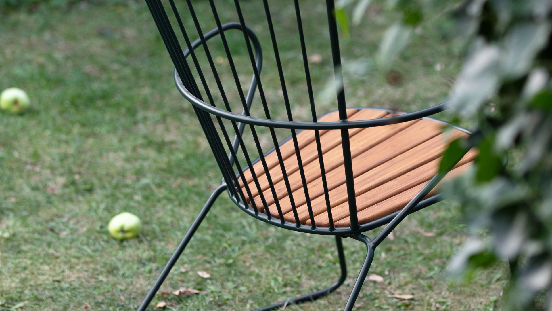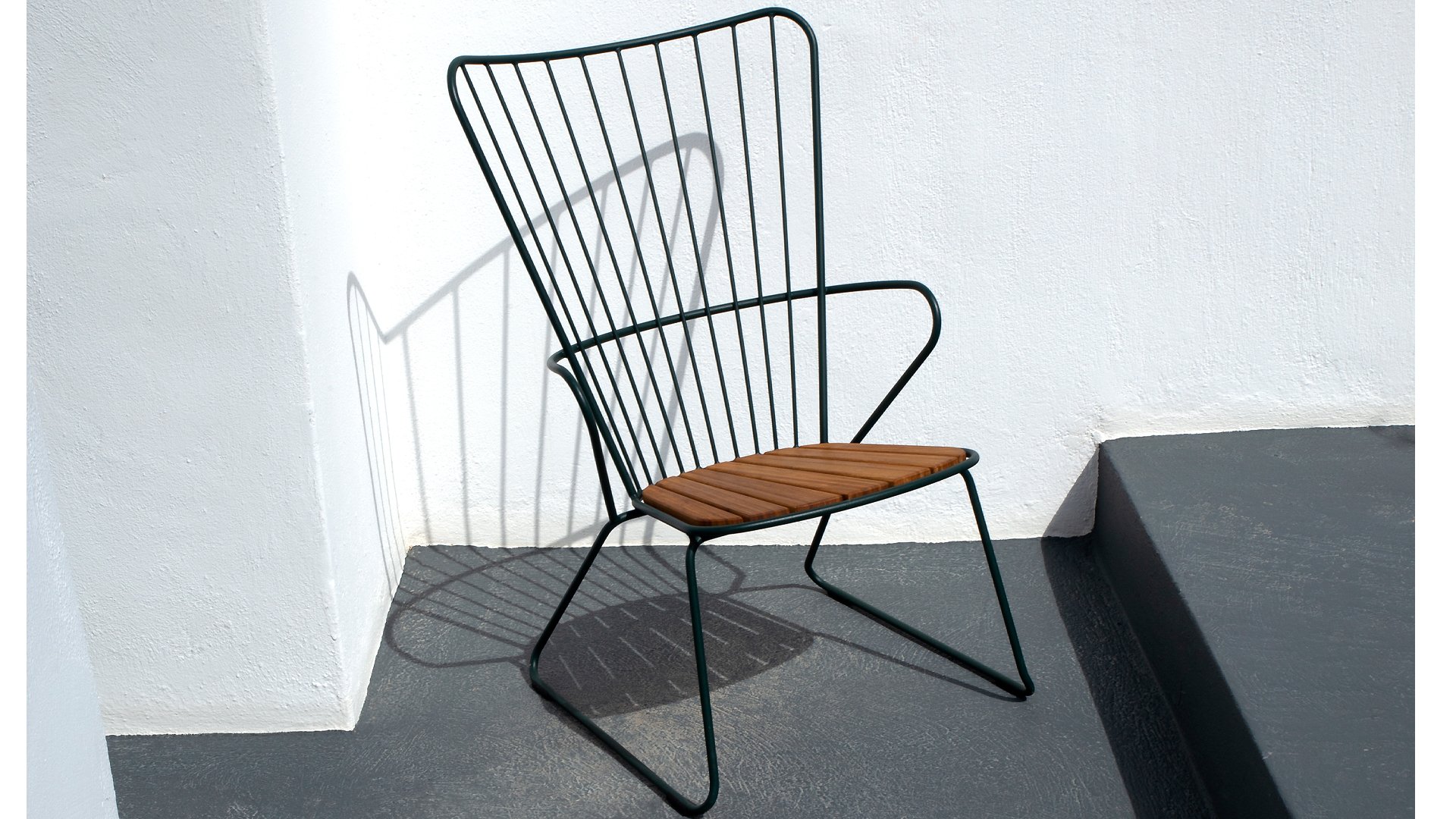 De HOUE Paon is licht Scandinavisch in zijn ontwerp maar met een vleugje Franse Victoriaanse romantiek. De HOUE Paon-lijn bestaat uit eetkamerstoelen, fauteuil, schommelstoel, een tweezitsbank en een barstoel. Gemaakt van gepoedercoat staal in combinatie met prachtige bamboe lamellen.HOUE Poan lounge collectie: Een zitcomfort dat je niet verwacht van een metalen stoel! Een kussen is optioneel verkrijgbaar.