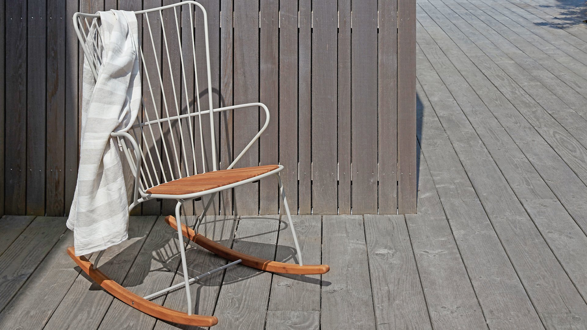 Heerlijk schommelen in een loungestoel doe je met de rocking chair van HOUE, geschikt voor zowel binnen als buiten!