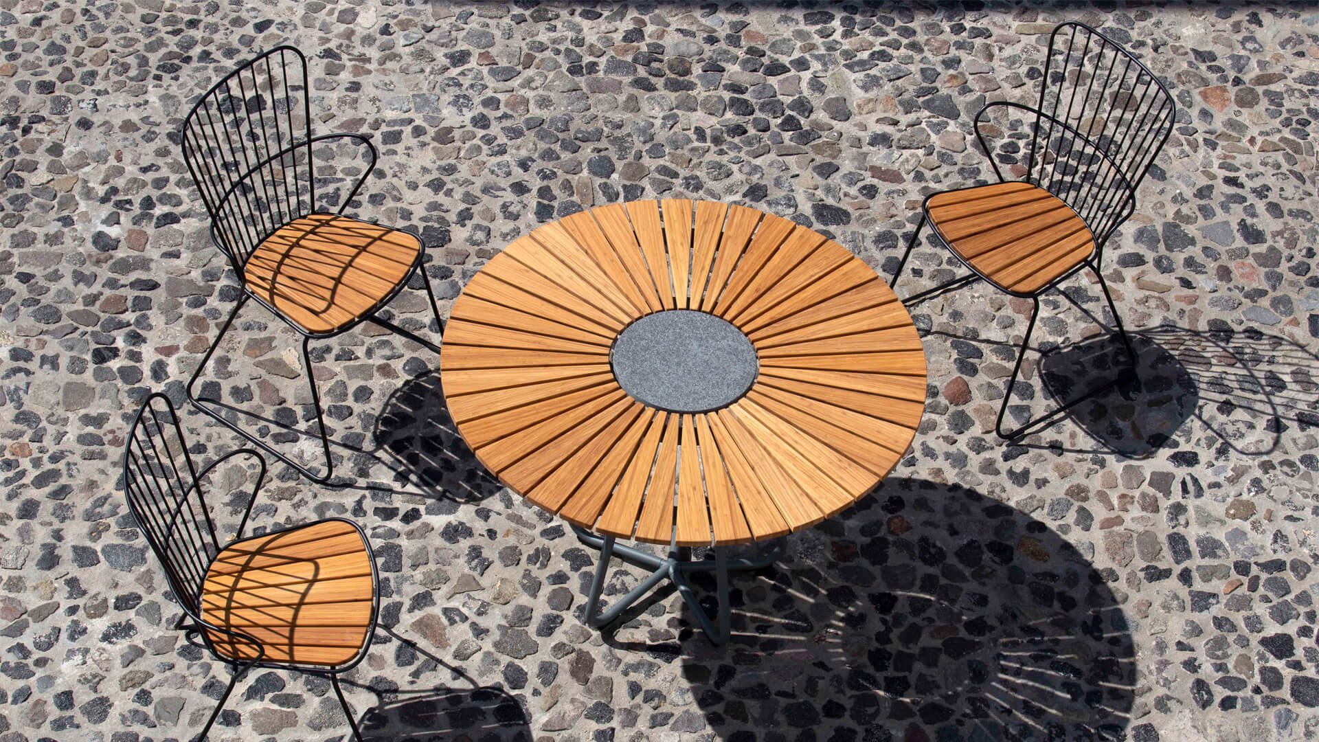 De Houe circle is een ronde tuintafel met een prachtig gemeleerd bamboe blad. De circle komt in 2 maten, namelijk 150cm en 110cm. Het leuke aan deze ronde tafel is dat het veel plek biedt. In het midden van de circle tafel zit een composiet steen. Dit is handig als u uw hete pannen e.d een plek moet geven. Het scandinavische design in combinatie met de duurzame bamboe zorgen ervoor dat deze tafel in iedere tuin tot zijn recht komt. Bamboe is een snel groeiende plant en daarom veel duurzamer dan teak. We adviseren de tafel 2-3 keer per jaar te oliën. Wanneer de tafel goed onderhouden wordt gaat hij erg lang mee en blijft hij zijn prachtige kleuren behouden.