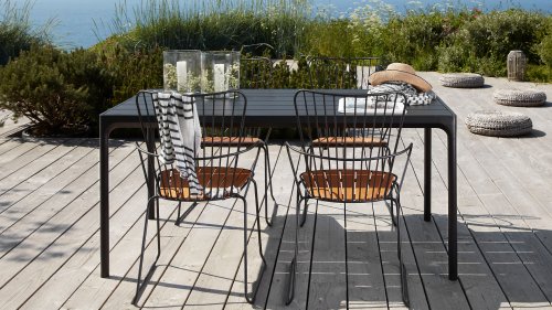 De Four tafel van Houe is een robuust model dat goed past binnen een industrieel interieur of een stoer interieur. De tafel is ontworpen om weer en wind te kunnen weerstaan. De Four tafel heeft een sterk aluminium frame verkrijgbaar in gepoedercoat zwart. Het aluminium tafelblad heeft een structuur die erg geschikt is voor het buitengebruik. De tafel komt in de afmetingen met een lengte maat van 90, 160, 210 en 270cm en hebben allemaal een breedte maat van 90cm en een hoogte van 74cm (bartafel 111cm hoog).