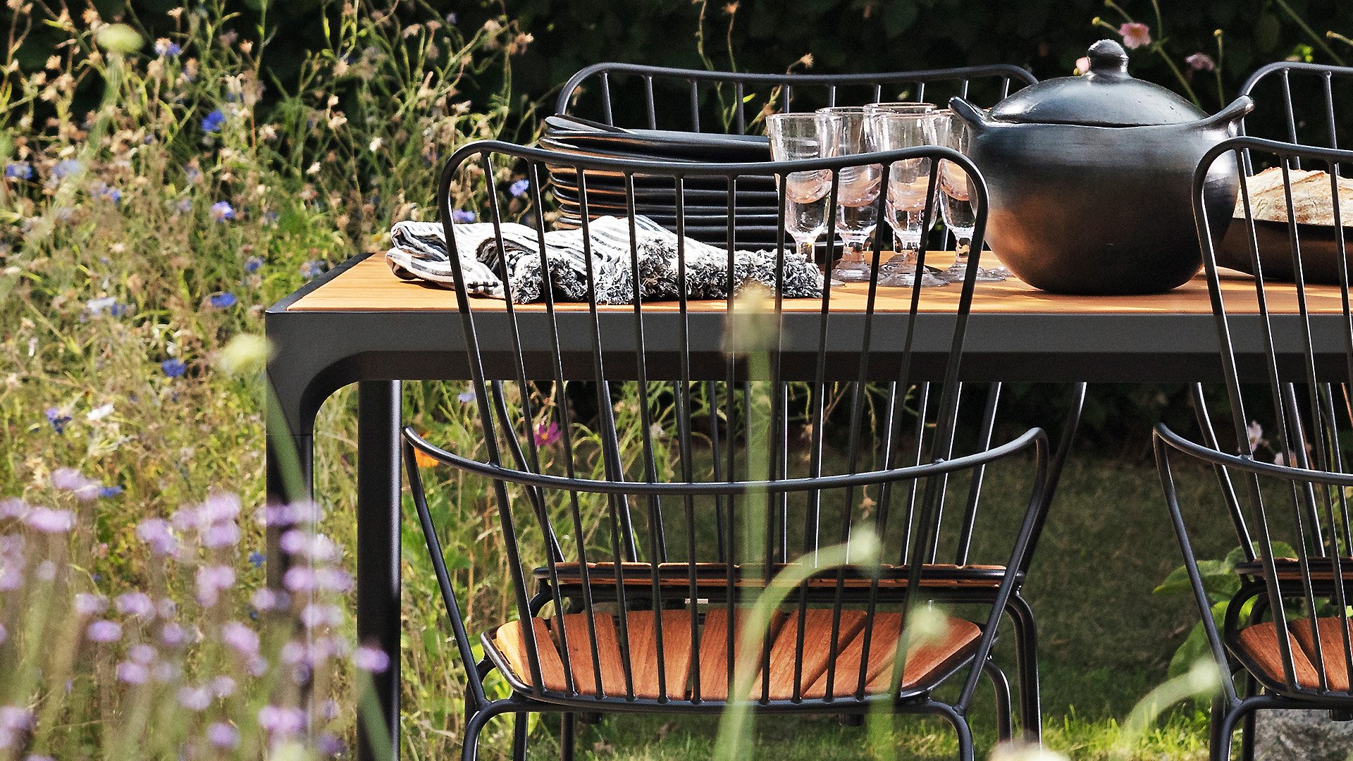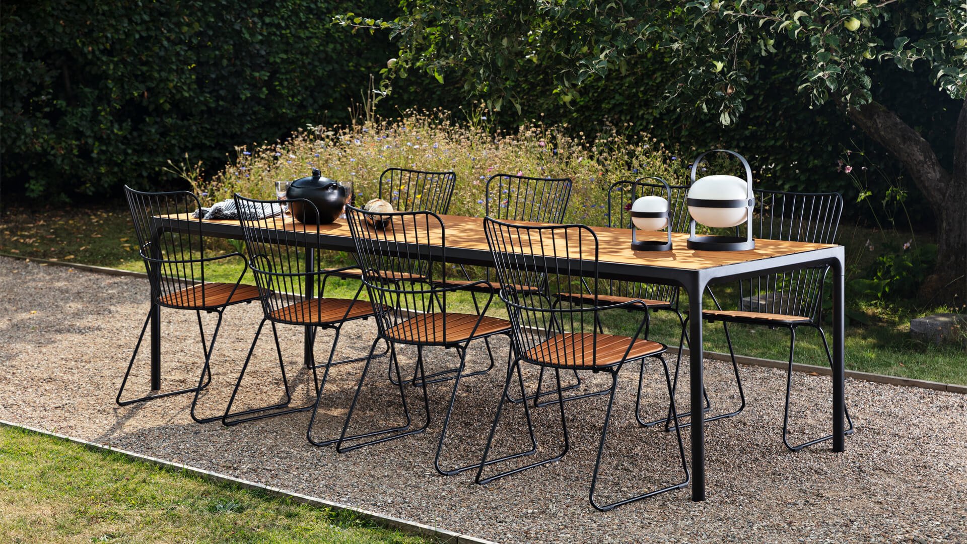 De Four tafel van Houe is een robuust model dat goed past binnen een industrieel interieur of een stoer interieur. De tafel is ontworpen om weer en wind te kunnen weerstaan. De Four tafel heeft een sterk aluminium frame verkrijgbaar in gepoedercoat grijs of zwart. Het bamboe tafelblad heeft een structuur die erg geschikt is voor het buitengebruik. De tafel komt in de afmetingen met een lengte maat van 90, 160, 210 en 270cm en hebben allemaal een breedte maat van 90cm en een hoogte van 74cm(bartafel 111cm hoog). Bamboo is een duurzamer alternatief voor teak. Wel adviseren we om de bamboe 2-3 keer per jaar in te smeren met olie, de tafel zal dan langer zijn warme kleuren behouden.