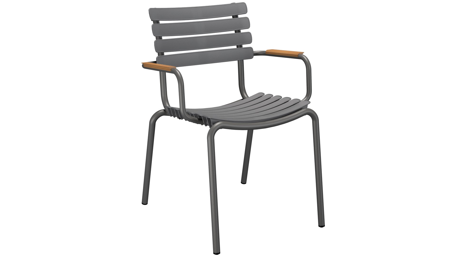 HOUE ReClips Dining collectie: Lichtgewicht met een minimalistisch ontwerp. Gemaakt uit volledig gerecycled plastic! De tuinstoel is ontworpen door Henrik Pedersen, een van oorsprong Deense designer die we al kennen van de iconische Click! Verkrijgbaar in 4 kleuren, met bamboo of aluminium armlegger.