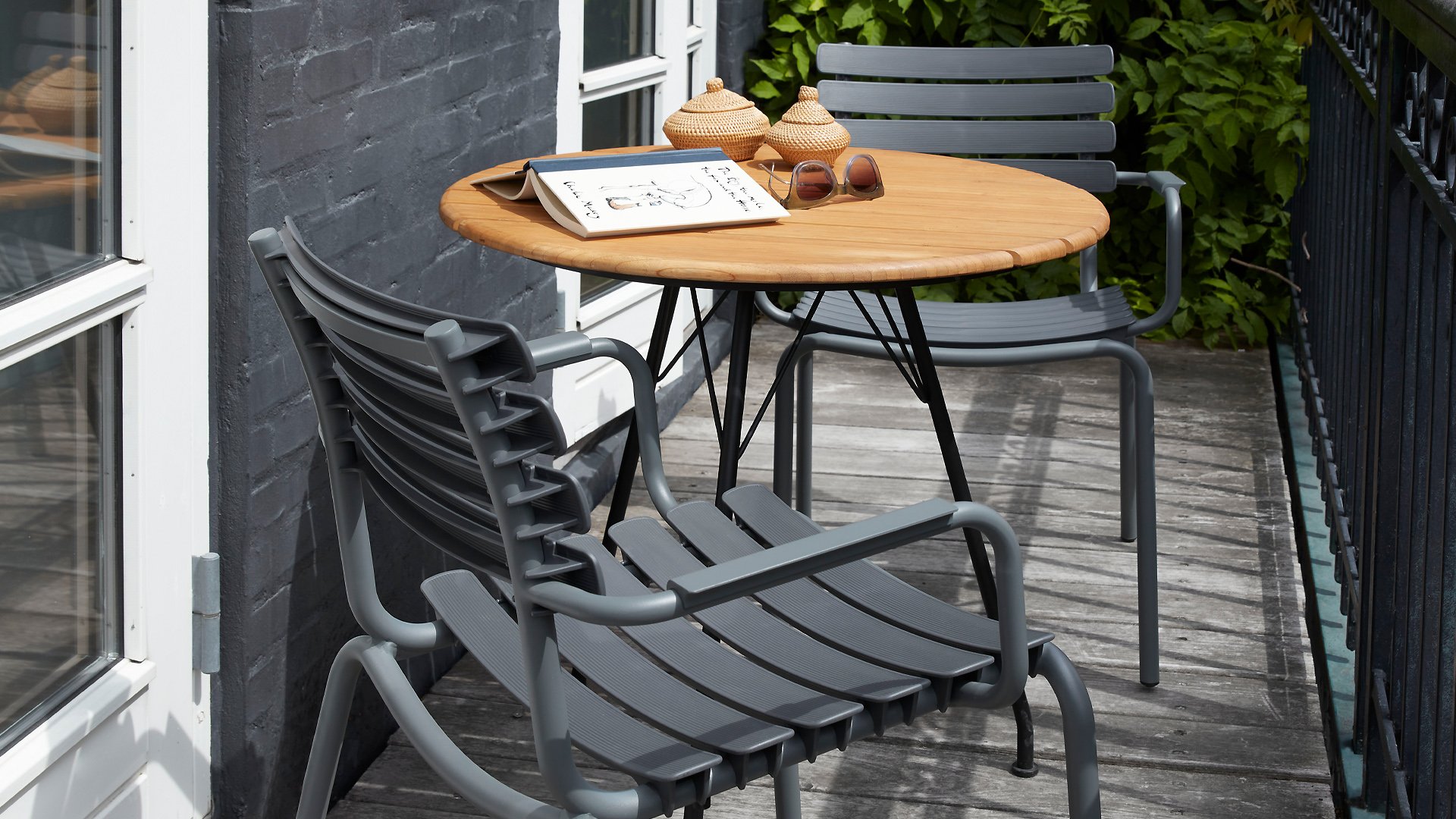 HOUE ReClips Dining collectie: Lichtgewicht met een minimalistisch ontwerp. Gemaakt uit volledig gerecycled plastic! De tuinstoel is ontworpen door Henrik Pedersen, een van oorsprong Deense designer die we al kennen van de iconische Click! Verkrijgbaar in 4 kleuren, met bamboo of aluminium armlegger.