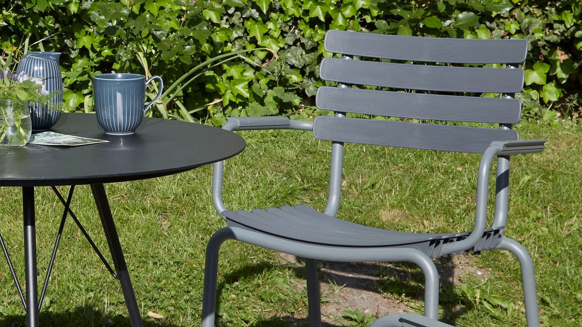 HOUE ReClips Dining collectie: Lichtgewicht met een minimalistisch ontwerp. Gemaakt uit volledig gerecycled plastic! De tuinstoel is ontworpen door Henrik Pedersen, een van oorsprong Deense designer die we al kennen van de iconische Click! Verkrijgbaar in 4 kleuren, met bamboo of aluminium armlegger.