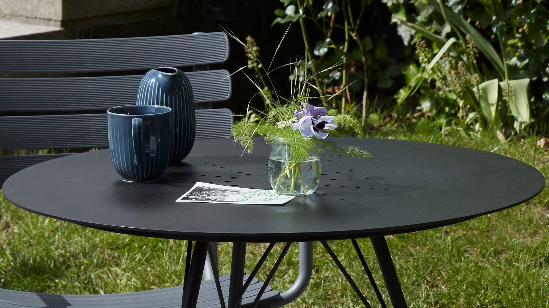 Wat een stijlvol bistro tafeltje is deze HOUE Circum tafel. Het strakke aluminium tafelblad in combinatie met het stijlvolle potenstel, maken dat deze tafel in iedere tuin of balkon een mooie aanvulling is. Te combineren met de gehele diningcollectie van HOUE. Ziet u zichzelf al koffie drinken aan deze tafel?