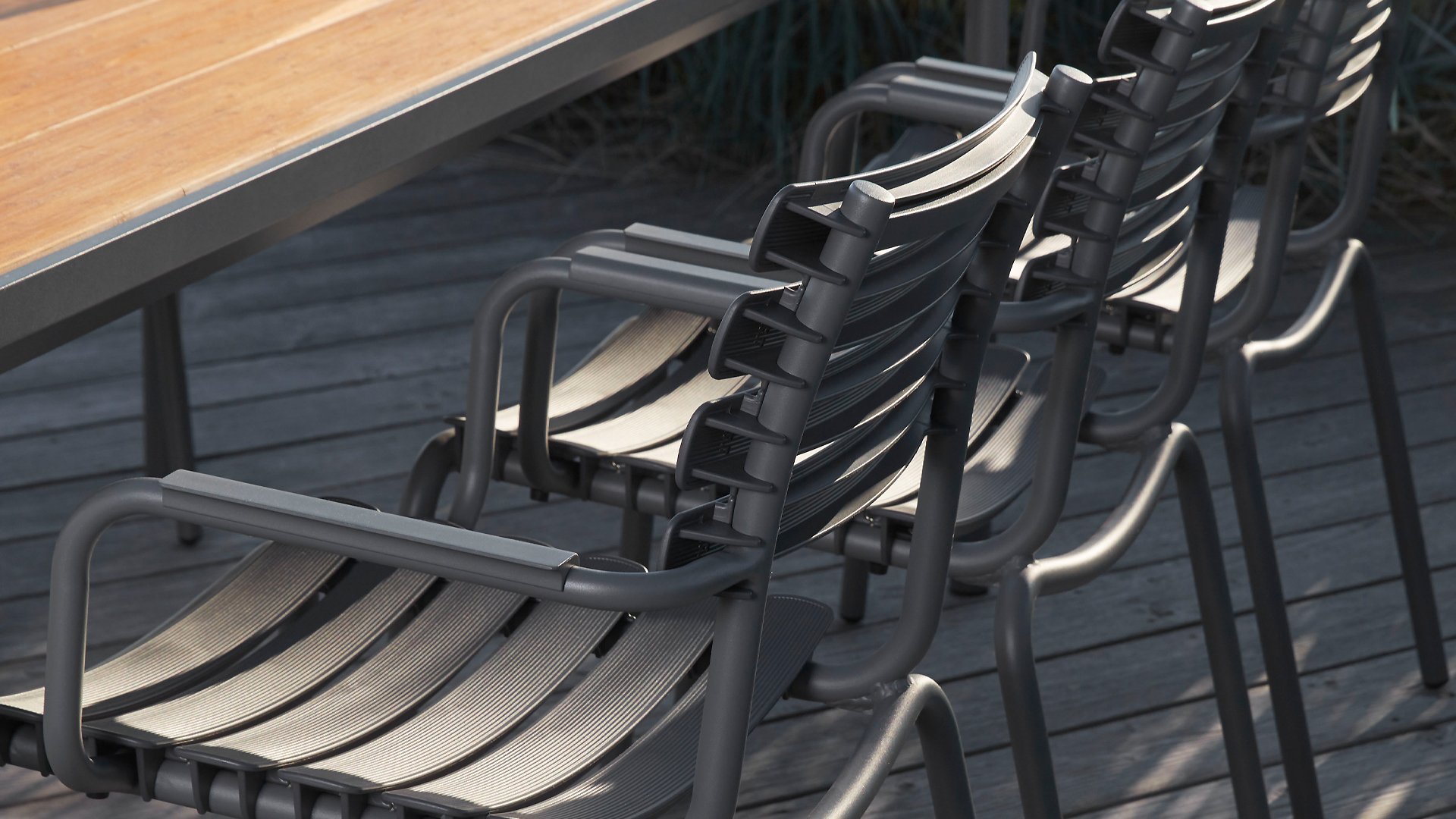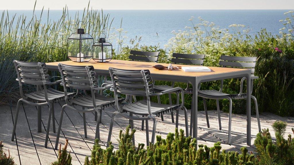 HOUE ReClips Dining collectie: Lichtgewicht met een minimalistisch ontwerp. Gemaakt uit volledig gerecycled plastic! De tuinstoel is ontworpen door Henrik Pedersen, een van oorsprong Deense designer die we al kennen van de iconische Click! Verkrijgbaar in 4 kleuren, met bamboo of aluminium armlegger.