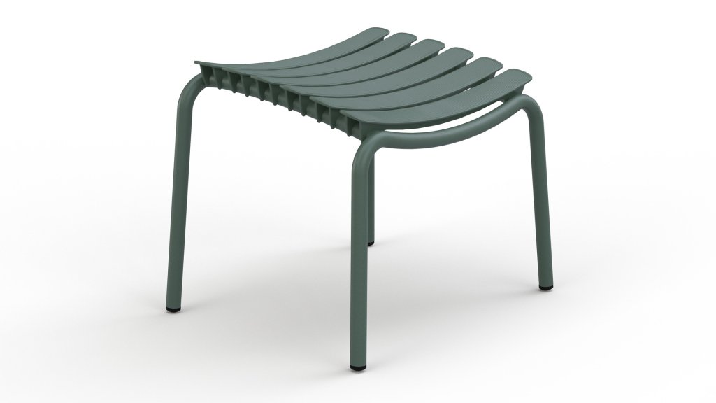 De Houe Reclips voetenbank is passend bij de Reclips Loungestoel. Het frame bestaat uit gepoedercoat aluminium en de lamellen zijn van gerecycled kunststof.