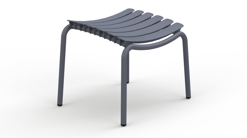 De Houe Reclips voetenbank is passend bij de Reclips Loungestoel. Het frame bestaat uit gepoedercoat aluminium en de lamellen zijn van gerecycled kunststof.