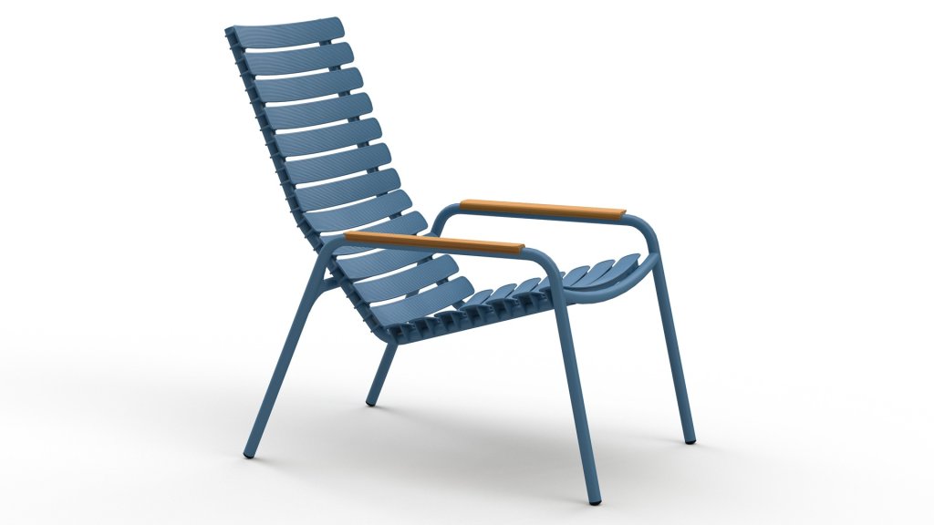 De HOUE Reclips serie is gemaakt van ge-recycled plastic. In combinatie met het gepoedercoate aluminium frame is dit een onderhoudsvrije loungestoel. De ergonomisch gevormde rug, maakt de stoel zeer comfortabel te gebruiken zonder kussen. In deze serie zijn ook een barstoel, tuinstoel en een rocking chair te verkrijgen.