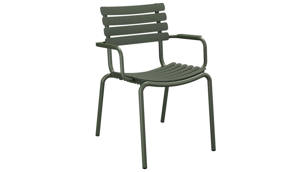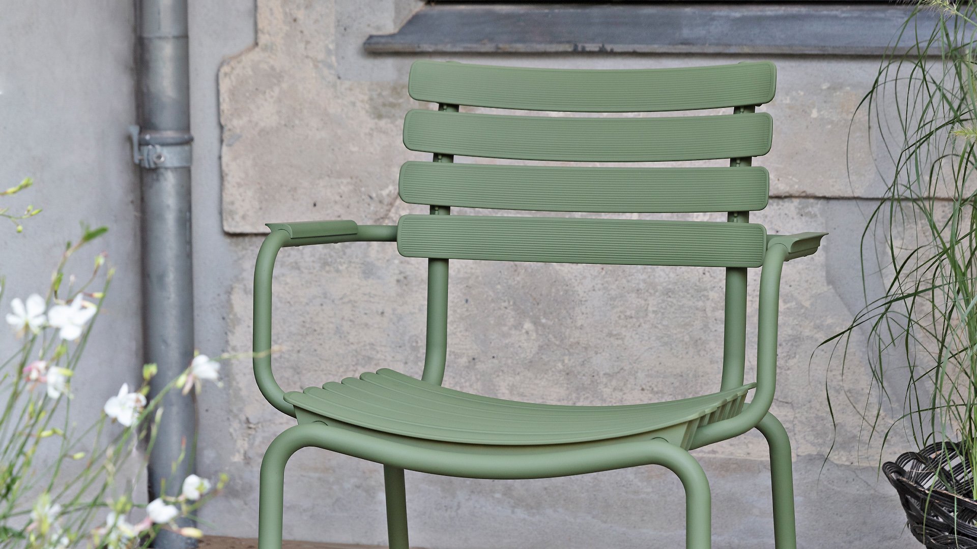 HOUE ReClips Dining collectie: Lichtgewicht met een minimalistisch ontwerp. Gemaakt uit volledig gerecycled plastic! De tuinstoel is ontworpen door Henrik Pedersen, een van oorsprong Deense designer die we al kennen van de iconische Click! Verkrijgbaar in 4 kleuren, met bamboo of aluminium armlegger.