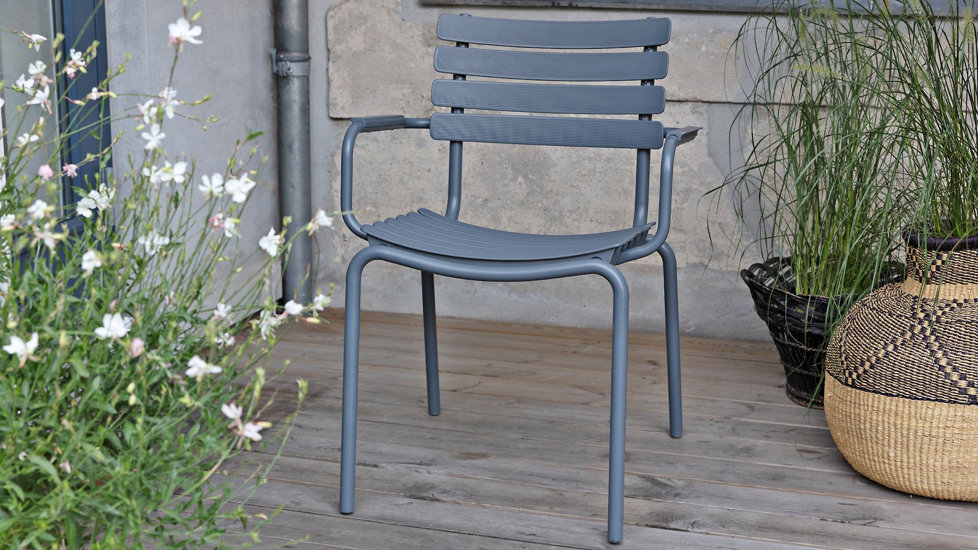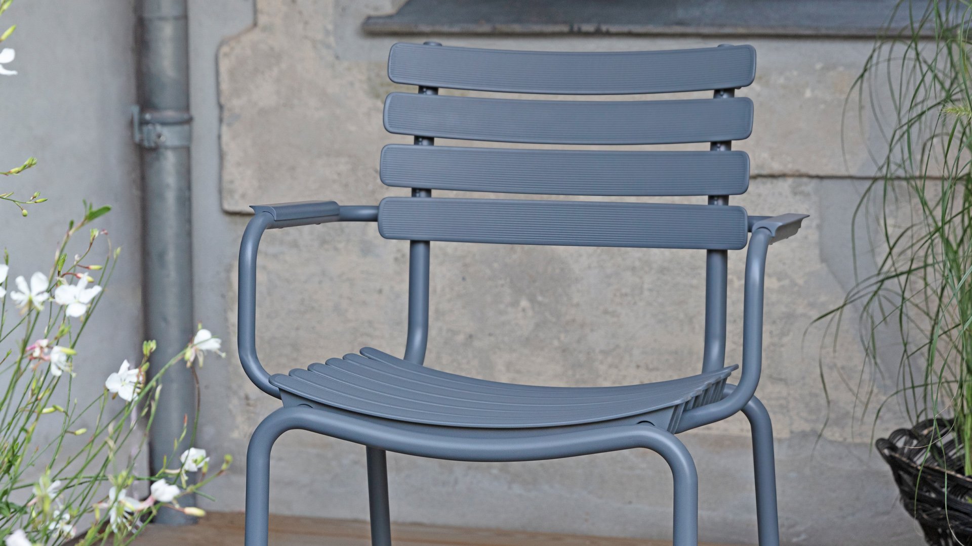 HOUE ReClips Dining collectie: Lichtgewicht met een minimalistisch ontwerp. Gemaakt uit volledig gerecycled plastic! De tuinstoel is ontworpen door Henrik Pedersen, een van oorsprong Deense designer die we al kennen van de iconische Click! Verkrijgbaar in 4 kleuren, met bamboo of aluminium armlegger.