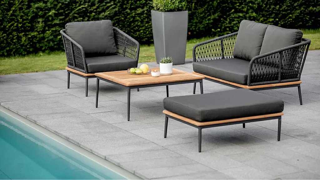 | Materiaal Loungeset | Rope, Teak, Gepoedercoat Aluminium/Staal |