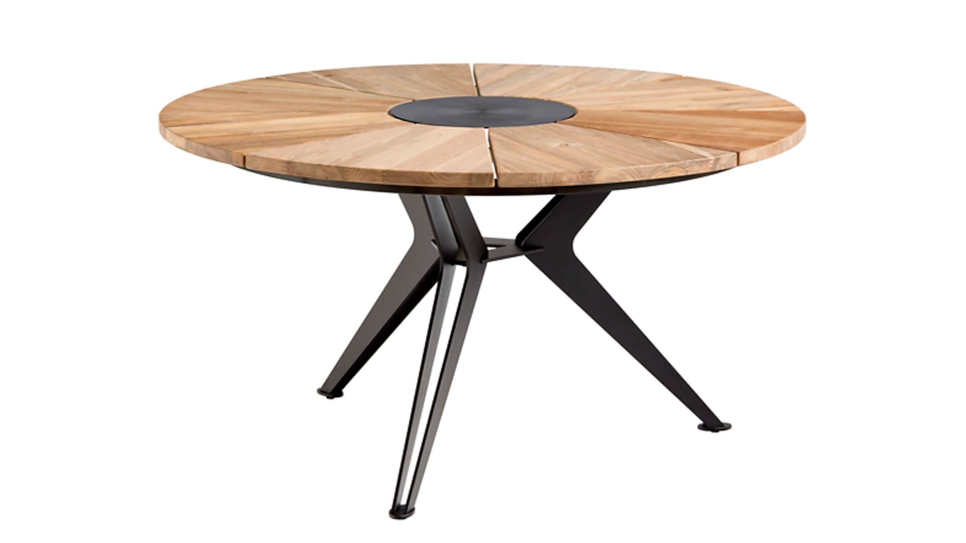 1 x Niehoff Nexor tafel Ø 140cm teak geborsteld-staal gepoedercoat