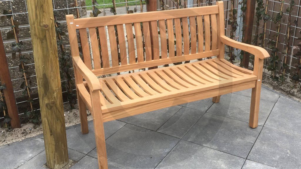 De kwalitatief hoogwaardige bank is mooi afgewerkt en gemaakt van duurzaam teak hout. De licht gebogen rug zorgt voor extra comfort.