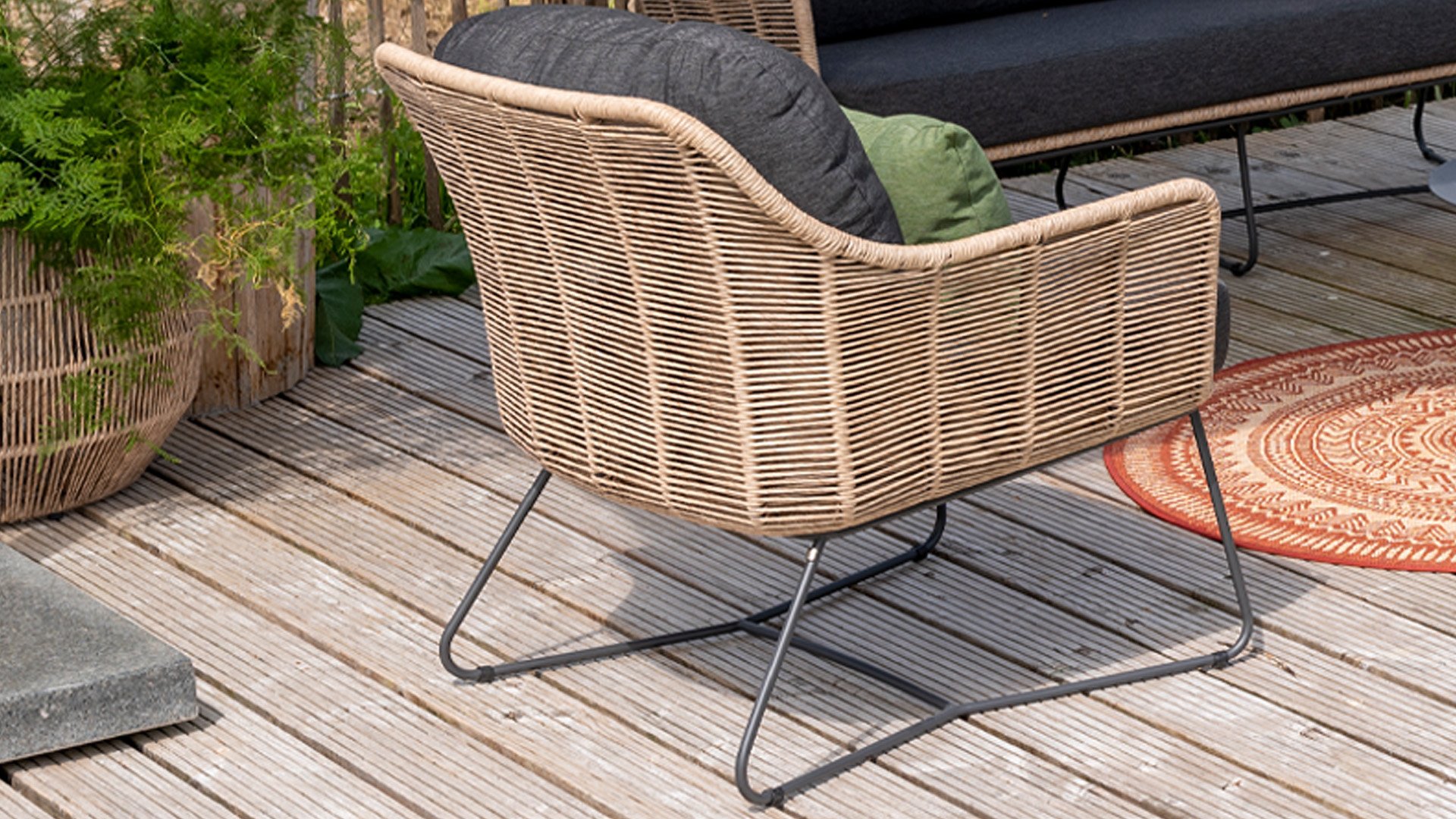 De sterke stof is bestand tegen een regenbui, uitritsbaar en wasbaar. Handig, maar let wel: de kussens zijn waterafstotend. Laat je ze lang in de regen liggen, dan kunnen ze alsnog nat worden aan de binnenkant.