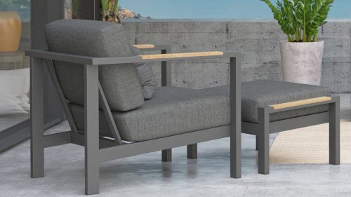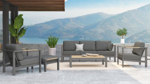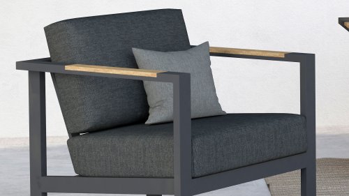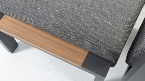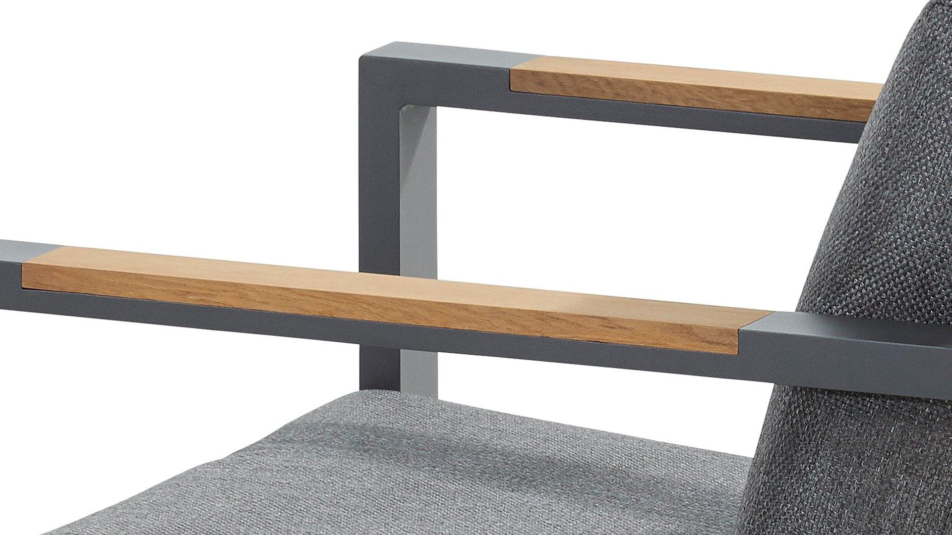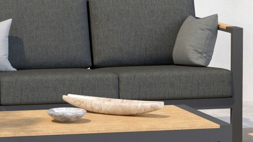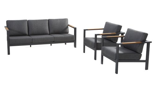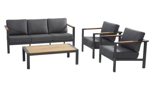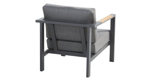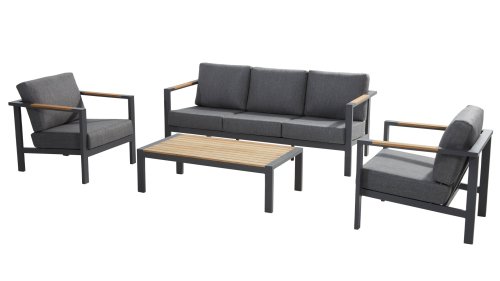 De Taste Ginger loungeset is een zeer comfortabel en robuust vormgegeven loungeset met een modern design. Een relaxte set om heerlijk in te loungen met een goed boek of de nieuwste glossy. De Taste Ginger is uitgevoerd in rusitge neutrale kleuren en past daarom in vrijwel iedere tuin. Het frame is van hoogwaardig antraciet gepoedercoat aluminium afgewerkt met weerbestendig teakhouten armleggers.De grijze kussens zijn extra dik uitgevoerd en zien er uitnodigend uit. De stof is weerbestendig en heeft een stoer uiterlijk. Onder de zitkussens is een Textileen bespanning, hiermee wordt het zitcomfort nog meer vergroot.