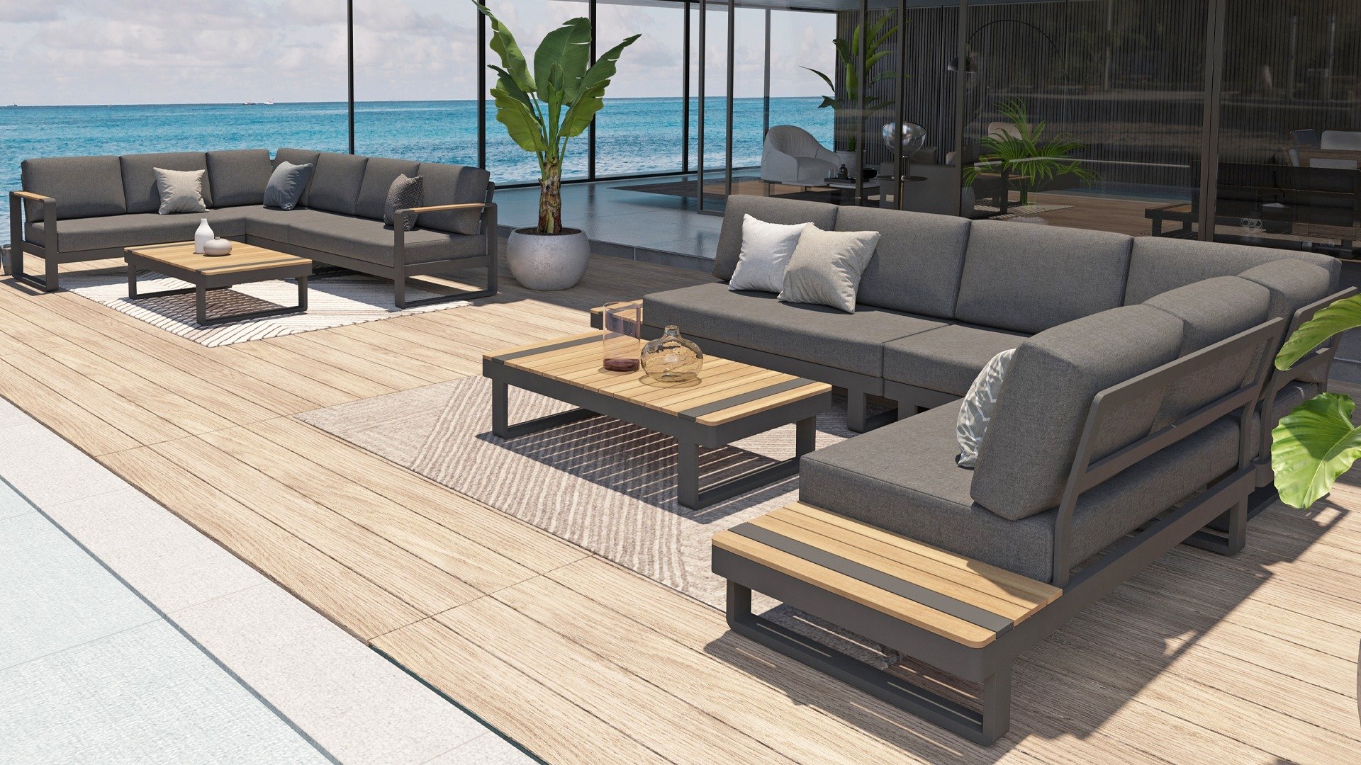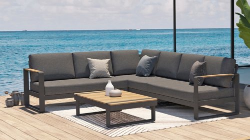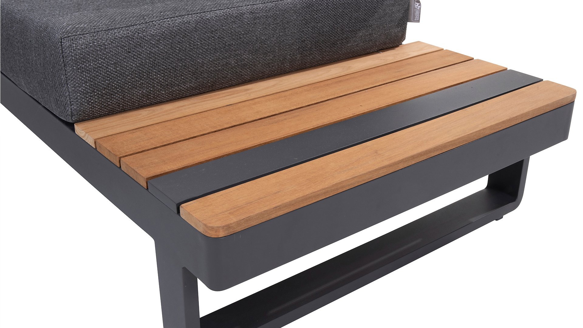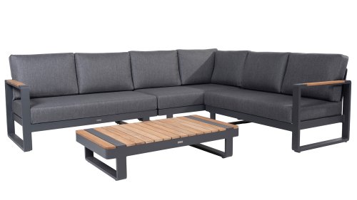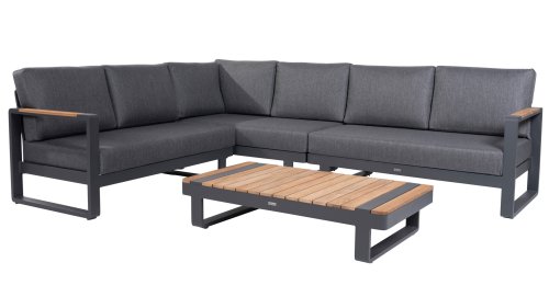 De Taste by 4 Seasons Amari loungeset is een moderne platform loungeset met een strak design. De Semi- all weather kussens die op de loungeset liggen krijgt u er standaard bij en hebben een hoog comfort niveau. Het set is te koop met zowel een hoektafel of een kussenhoek, het voordeel van de sluitende kussenhoek is dat het set een extra zitplek heeft. En dat u vanuit de hoek heerlijk kunt "loungen" met de benen op de bank! De kleuren combinatie met het teakhout en aluminium zorgt voor een fantastische uitstraling!
