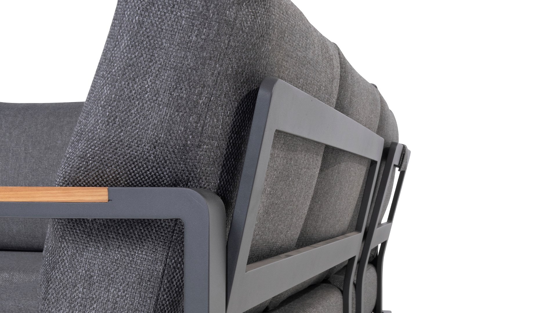 Het is kwaliteit en dat zie je bijvoorbeeld ook terug in het aluminium frame, deze is minimaal 2 mm dik en voorzien van een extra sterke antraciet poeder coating. Het frame is hierbij beter beschermd en sterker dan vele andere tuinmeubelen. Vandaar dat ook op dit set standaard 5 jaar garantie van toepassing is. Het moderne design, de hoogwaardige materialen en het uitzonderlijk goed zitcomfort zijn dé kenmerken van de Taste 4 Seasons Outdoor Amari Loungeset!