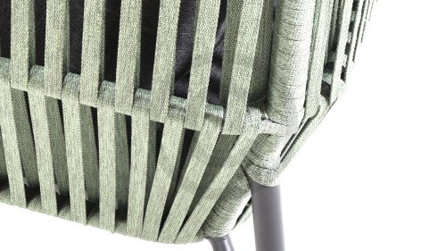 De Antara loungeset antraciet van Taste 4SO valt direct in het oog, een eigentijds ontwerp vervaardigd van verfijnde materialen als rope en aluminium. De Antara hoekbank is modulair en dus zelf naar wens samen te stellen. Voor wie zijn terras wat meer kleur wilt geven, is groen een fantastische keuze! In geheel dezelfde stijl zijn er ook de Vitali dining stoelen verkrijgbaar, hierdoor ontstaat er rust in uw tuin. U kijkt hier naar de groene variant.
