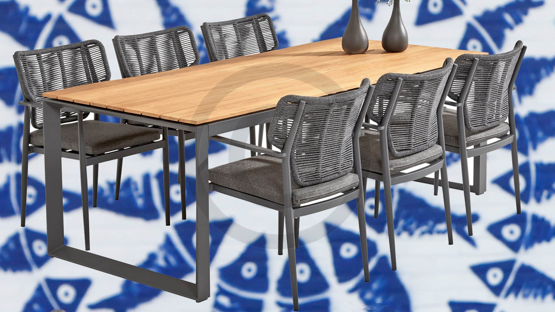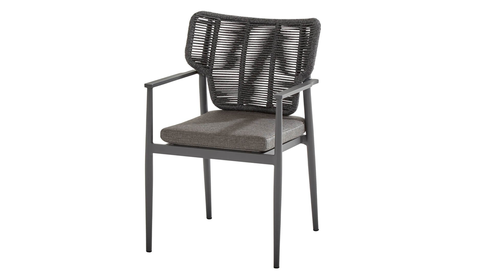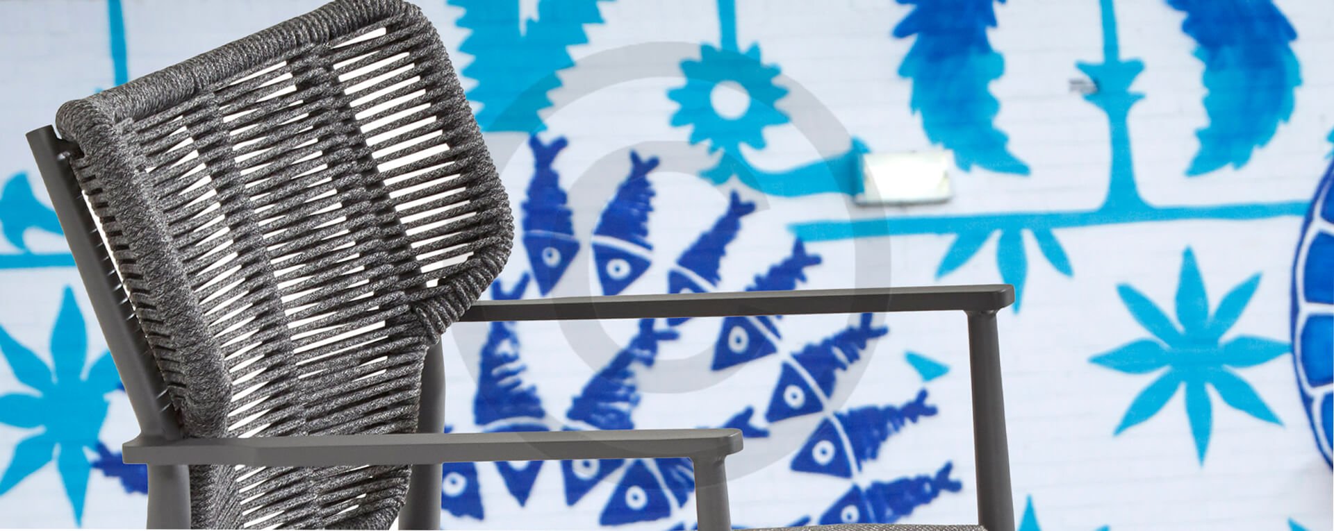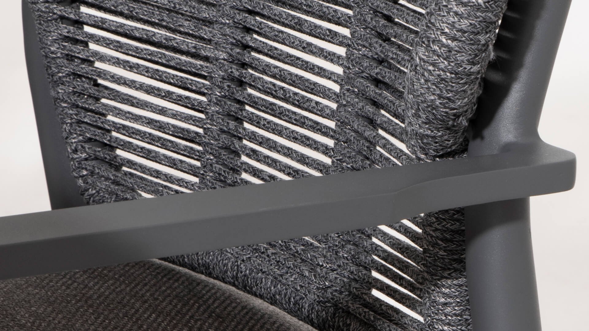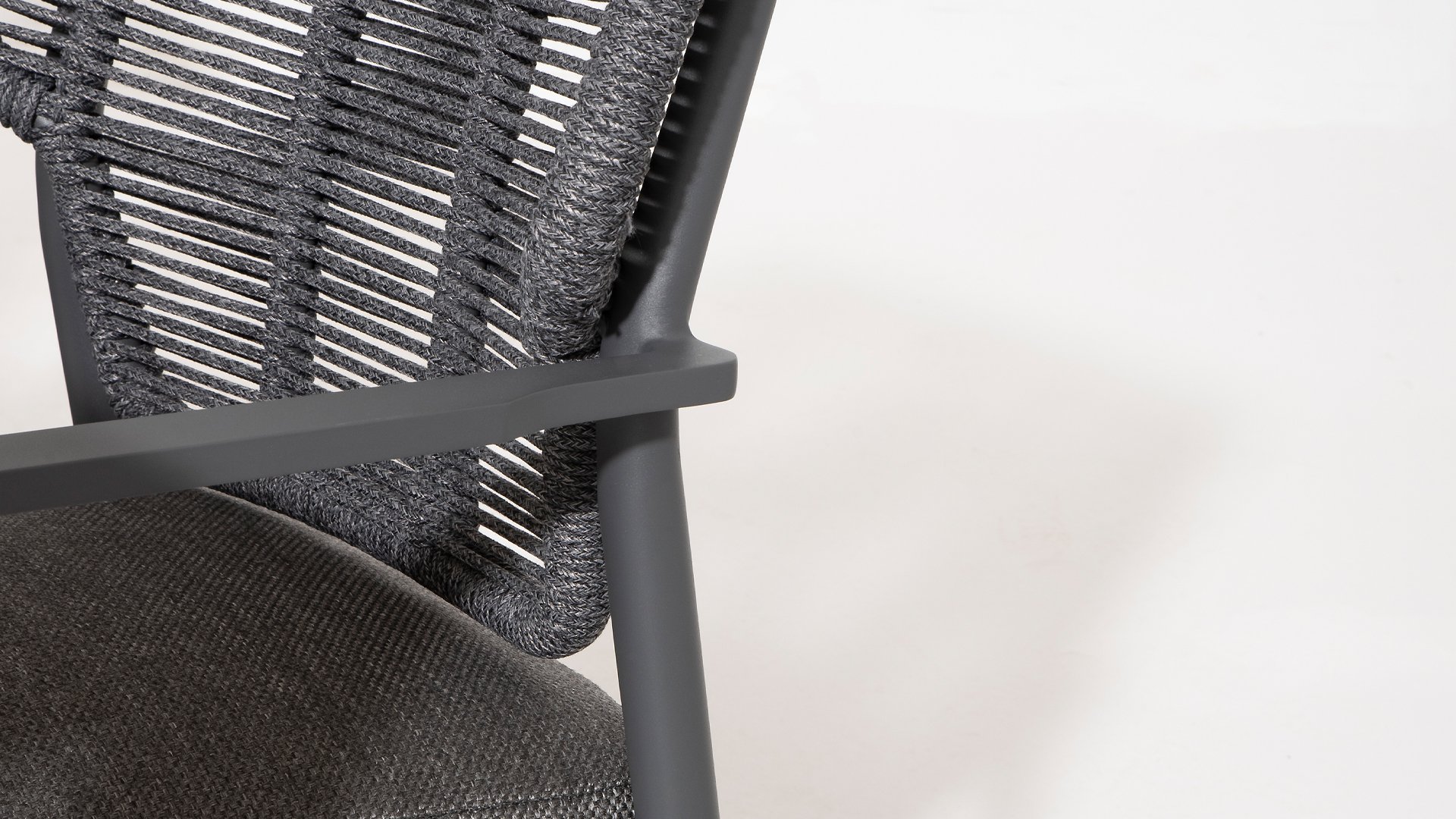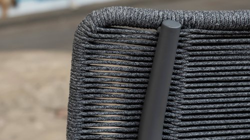 Het Taste by 4 Seasons Arturo frame is omvlochten is met grijs gekleurd synthetische wicker in de vorm van touw (Rope). De kussens zijn uitgevoerd in een prachtige Grey kleurige Olefin stof. Door de veerkracht van het Rope materiaal zijn dikke kussens niet meer nodig voor om comfort te verkrijgen en dat scheelt weer heel wat opbergruimte en gesjouw.