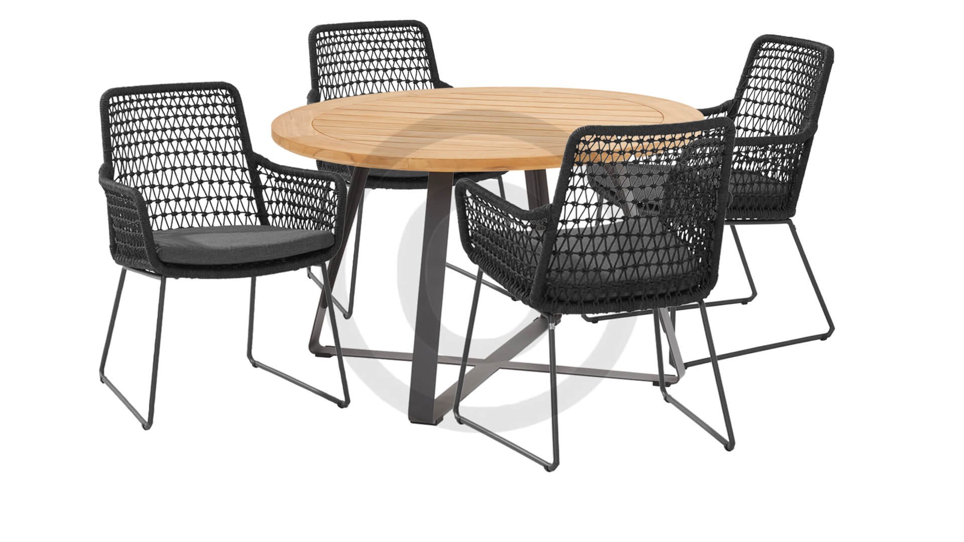 De Taste by 4 Seasons Athena tuinstoel is uniek in vele opzichten. Onze vlecht specialisten hebben jarenlange ervaring en zijn in staat om ingewikkelde patronen en knopen te verwerken, de Taste Athena dining heeft een kuip met uniek geknoopt Rope. De luchtige looks zijn in de kuip en ook in het onderstel terug te vinden, het minimalistische onderstel is gemaakt van subtiele RVS buizen in een antraciet kleurige coating. Bovendien zijn de kussens van een Olefin kussen hoes voorzien voor het beste comfort en hoge weerbestendige eigenschappen. Geniet jarenlang van Athena stoel in uw tuin dankzij hoogwaardige materialen en exclusief design.