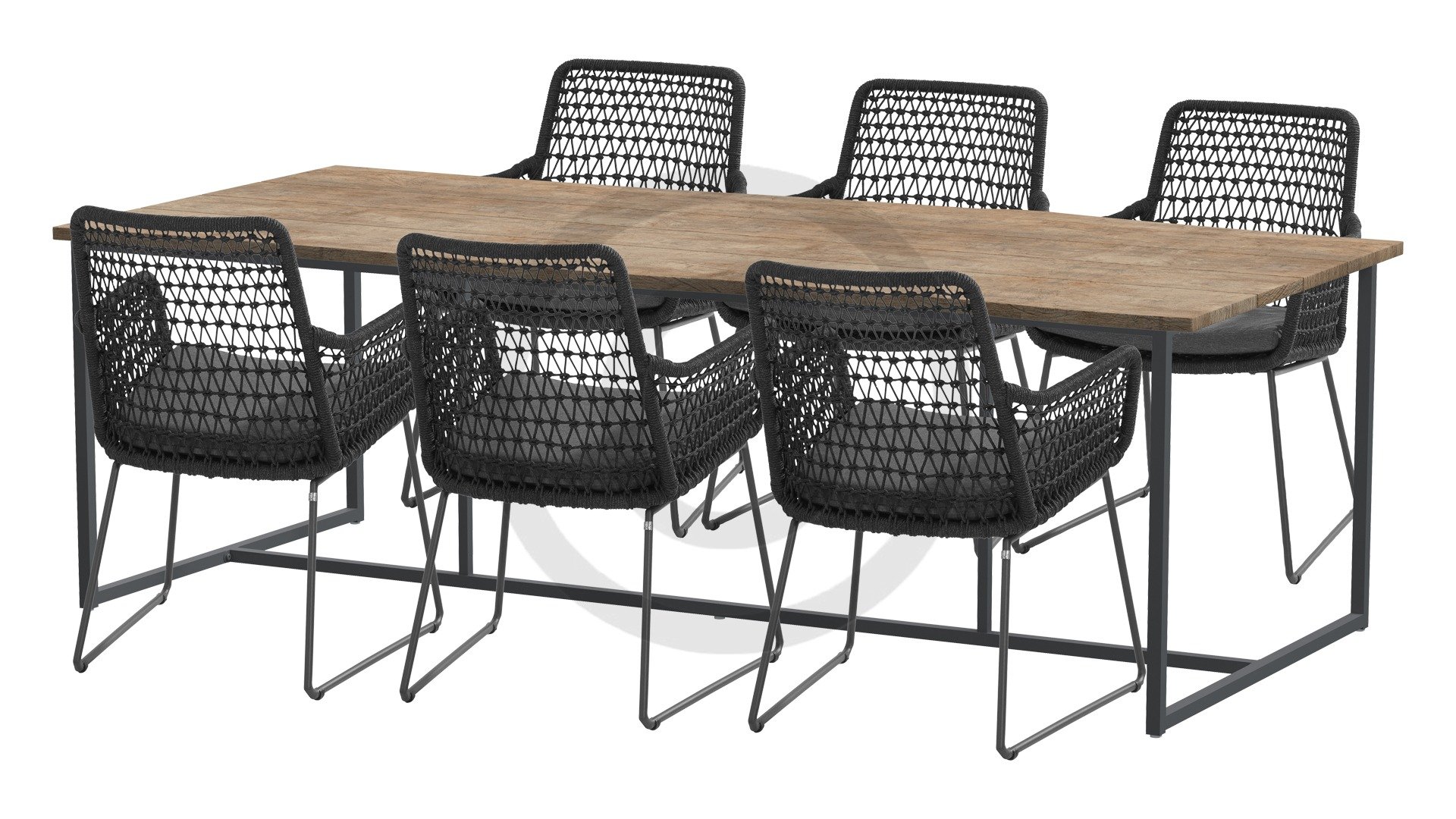 1 x 4 Seasons Outdoor Quatro Tafel 220x95cm Alu Antraciet/Robusto Teak