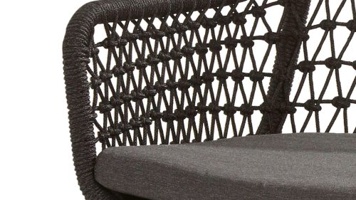 De Taste by 4Seasons Athena tuinstoel is uniek in vele opzichten. De vlecht specialisten hebben jarenlange ervaring en zijn in staat om ingewikkelde patronen en knopen te verwerken, de Taste Athena dining heeft een kuip met uniek geknoopt Rope. De luchtige looks zijn in de kuip en ook in het onderstel terug te vinden, het minimalistische onderstel is gemaakt van subtiele RVS buizen in een antraciet kleurige coating. Bovendien zijn de kussens van een Olefin kussen hoes voorzien voor het beste comfort en hoge weerbestendige eigenschappen. Geniet jarenlang van Athena stoel in uw tuin dankzij hoogwaardige materialen en exclusief design.