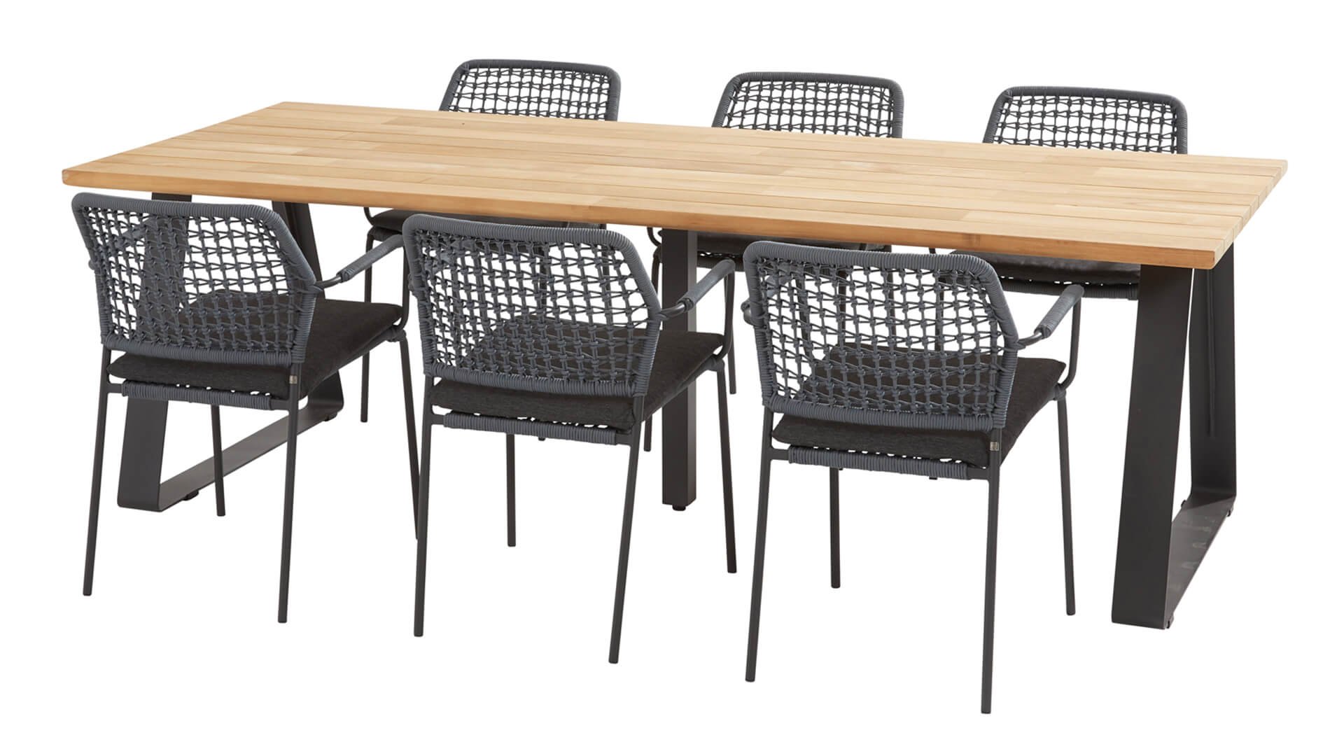 De Taste by 4Seasons Basso 240cm tafel is een zware kwaliteit tafel. De elegante sledepoot in combinatie met het warme teakhout zorgt voor een stoer geheel. De middenpoot zit er standaard bij, maar indien gewenst is de tafel ook zonder middenpoot te gebruiken.