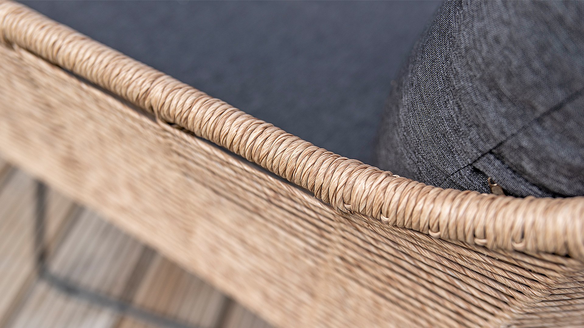 Je kent vast nog wel de rotan meubelen van vroeger, wie had ze niet in de tuin of in huis. 4 Seasons Outdoor blikt terug naar deze meubelen met deze Belmond lounge serie, naast de loungestoel is er namelijk ook nog een Belmond loungebank. Het rotan materiaal van vroeger is vervangen voor weerbestendig vlechtwerk. De vlechtdraad is zo sterk en kleurvast dat er maar liefst 5 jaar garantie op zit. Prachtig gevlochten om het frame ziet deze lounge er natuurlijk, maar toch ook modern uit. Een moderne variant van een oude traditie. Ook van de sterke kussens zult u veel lounge seizoenen plezier hebben. De kussens zijn door de unieke eigenschappen stof water- en vuilwerend, goed kleurvast en voelen zacht aan.