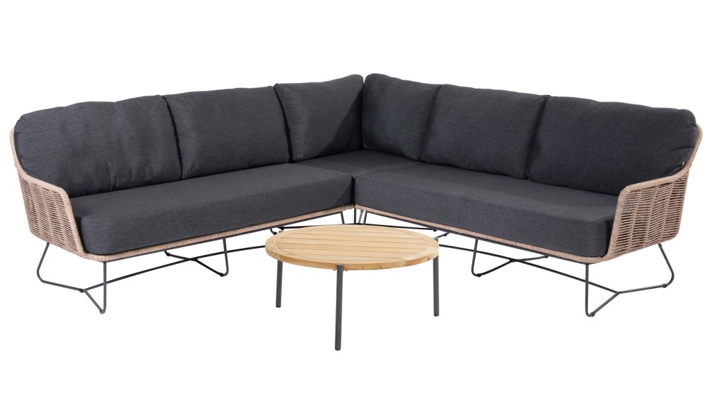 De sterke stof is bestand tegen een regenbui, uitritsbaar en wasbaar. Handig, maar let wel: de kussens zijn waterafstotend. Laat je ze lang in de regen liggen, dan kunnen ze alsnog nat worden aan de binnenkant.