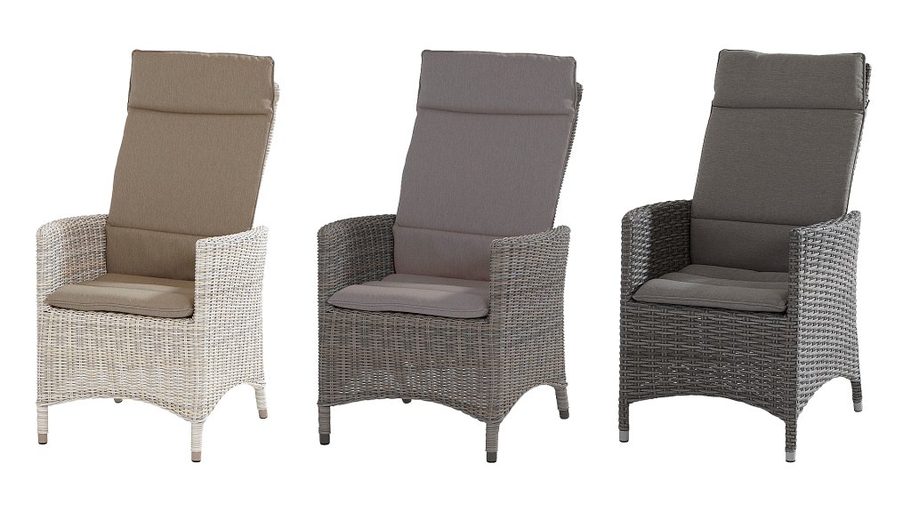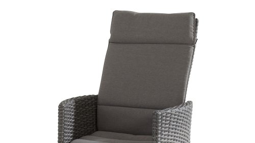 De rugleuning is door middel van een hendel aan de rechter zijkant te verstellen. Samen met de voetenbank staat dat garant voor een comfortabel "lounge gevoel". Daarnaast is er uitstekend in te vertoeven tijdens het eten. Rugleuning omhoog geeft de stoel de ondersteuning die u mag verwachten. De stoelen staan vooral erg mooi bij onze teakhouten tafels. Uiteraard is "Mix en Match volledig mogelijk, Momenteel nog maar leverbaar in de kleuren: Nero, Elzas en Roca